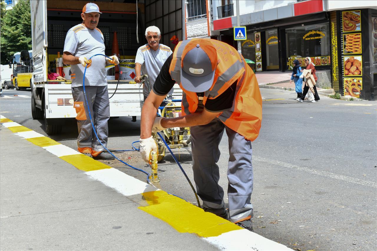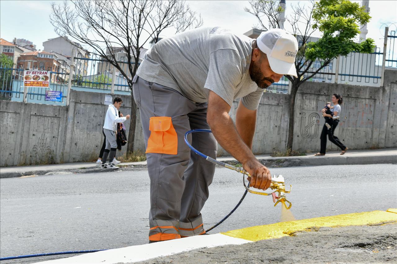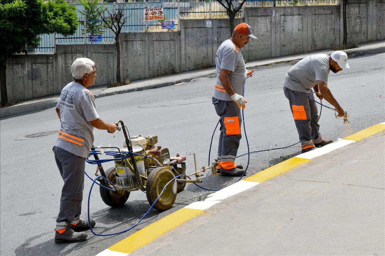 Ekipler, İstiklâl Mahallesi Büyük AyazmaCaddesi’nde bordür boyama çalışmalarına devam ediyor.