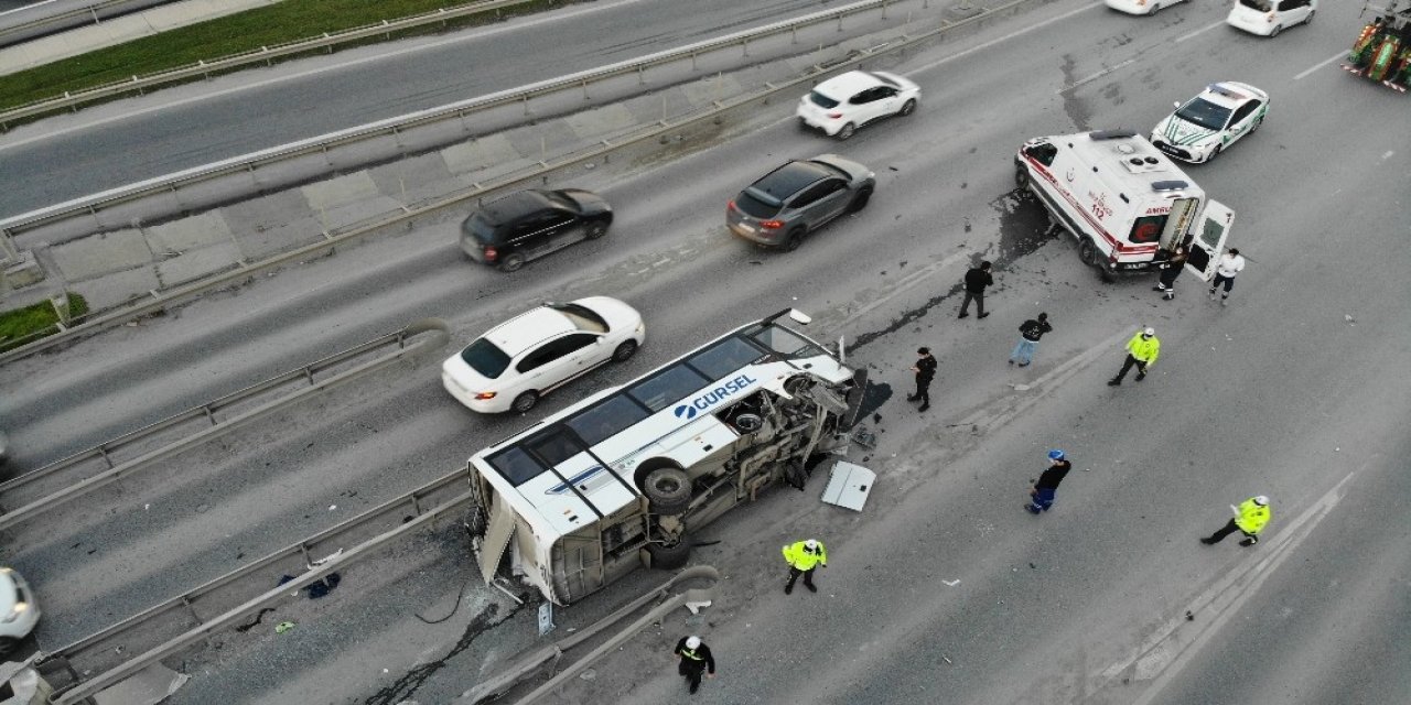 Kaza, saat 17.00 sıralarında TEM Otoyolu Esenyurt Gişeler'de meydana geldi. Edinilen bilgiye göre, TEM otoyolundan Avcılar istikametine ilerleyen midibüs, Esenyurt Gişeler'den çıkacağı sırada sürücünün kontrolünden çıkarak gişelerin beton bariyerlerine çarparak yola devrildi. Kazada midibüste bulunan 7 kişi yaralanırken, kaza bölgesinde yoğun trafik oluştu. Kazayı gören vatandaşlar midibüsteki yaralıların yardımına koşarken, bölgeye çok sayıda sağlık ve polis ekibi sevk edildi. İhbar üzerine olay yerine gelen polis ekipleri dubalarla yol üzerinde önlem alarak trafiğin akışını sağlarken, sağlık ekipleri ise yaralılara müdahale etti. Yapılan ilk müdahalenin ardından yaralı 4 kişi çevrede bulunan hastaneye kaldırılırken, hafif yaralı 3 kişi ise ayakta tedavi edildi. Ekiplerin yola devrilen midibüsü kaldırma çalışmaları sürüyor. Öte yandan bölgede kaza nedeniyle yoğun trafik oluşurken, kaza bölgesi drone ile görüntülendi.