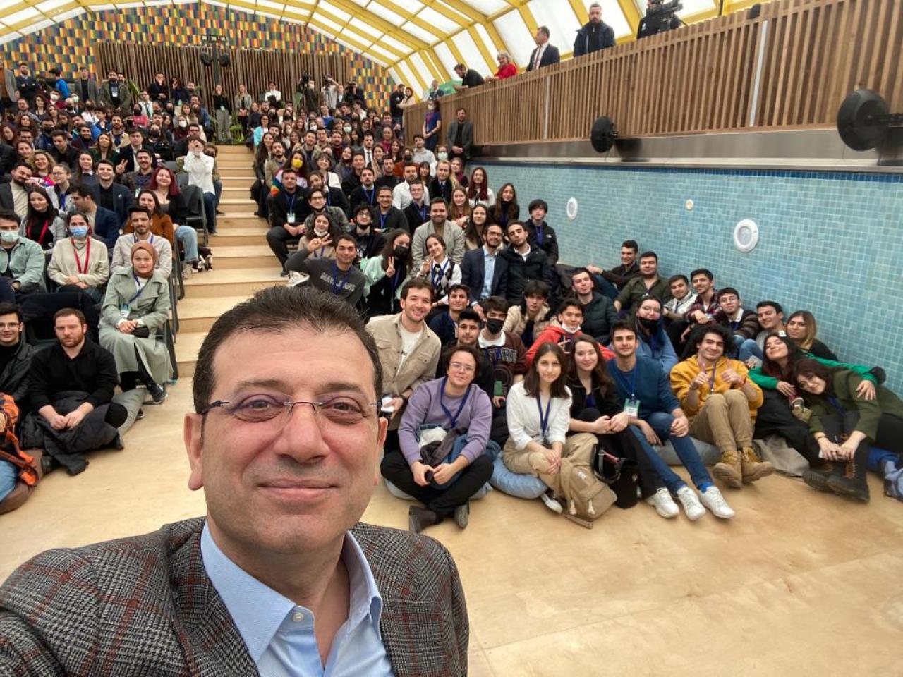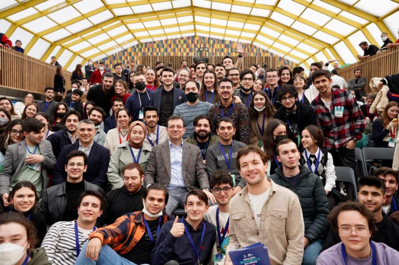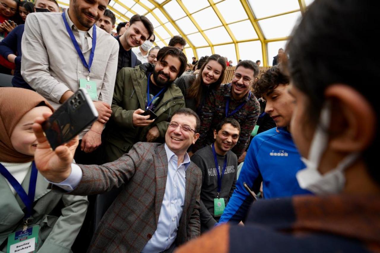 “Başarılar sizinle olsun, sağlık, huzur sizinle olsun” diyen İmamoğlu, gençlere, “Dirençli olun. Kendinizi güvende hissedin. Çünkü güvence, sizlersiniz. Bu kentin ve bu ülkenin milyonlarca genci var. Çok sevdiğimiz vatanımız var. Bu ülkenin değerleri çok güçlü. Tarihsel medeniyetleri çok güçlü. O bakımdan bizleri bir arada tutacak, çok güçlü hareketlerde bulunduracak, çok güzel işleri başaracak güzel bir ülkedeyiz. Onun için lütfen güveninizi en üst seviyede tutun. Umudunuzu en üst seviyede tutun. Zira ben, öyle hissediyorum bütün etrafımızda oluşan olumsuzluklara rağmen. Yanı başımızda bir savaş var. Bir an önce o savaşın bitmesini tabii ki diliyoruz. Ama inanın çok güçlü bir Türkiye, çok güzel üreten, akılla, bilimle, sanatla, kültürle, yaşamın her unsuruyla üreten cıvıl cıvıl bir Türkiye, çevresine demokrasiyi, özgürlüğü, barışı, huzuru iletir ve birçok olumsuzluğu da engelleyici bir güce sahip olur. Onun için sorumluluğunuz sadece kendiniz değil, sorumluluğunuz sadece aileniz değil, sorumluluğunuz sadece şehriniz İstanbul ya da sorumluluğunuz sadece ülkemiz, güzel cennet vatanımız Türkiye değil. Sizler iyi işler yaparsanız o güzel sorumluluk duygunuzla, dünyaya da iyi geleceğinizi unutmayın” tavsiyelerinde bulundu.