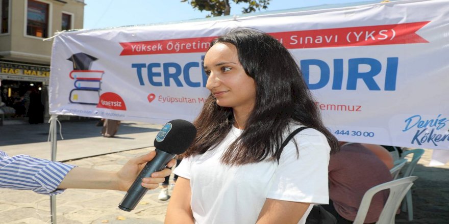 Gençlik ve Spor Müdürlüğü tarafından Eyüpsultan Meydanı’na kurulan YKS Tercih Çadırında, Bilgi Evlerinin rehber öğretmenlerinden oluşan uzman ekip, öğrencilerin kafalarındaki soru işaretlerini gidermek için gençleri bekliyor.