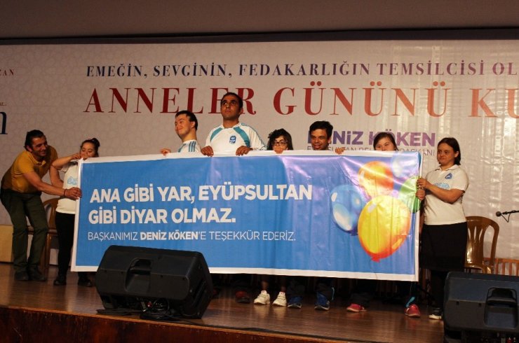 Eyüpsultan Belediyesi Engelliler Sürekli Eğitim ve Rehberlik Merkezi'nde (ESER) eğitim gören down sendromlu ve zihinsel engelli öğrenciler Anneler Günü dolayısıyla anneleri için sürpriz gösteri düzenledi. Gösteri öncesi oruçlarını açan vatandaşlar, daha sonra engelli gençlerin sundukları gösteriyi seyretti. Semazen, vals gibi gösteriler düzenleyen gençler, anneleri için yazdıkları şiirlerini okudu. Eyüpsultan Belediye Başkanı Deniz Köken'in de katıldığı program sonunda gençler "Ana gibi yar, Eyüpsultan gibi diyar olmaz" yazılı pankart açarak hatıra fotoğrafı çektirdi.