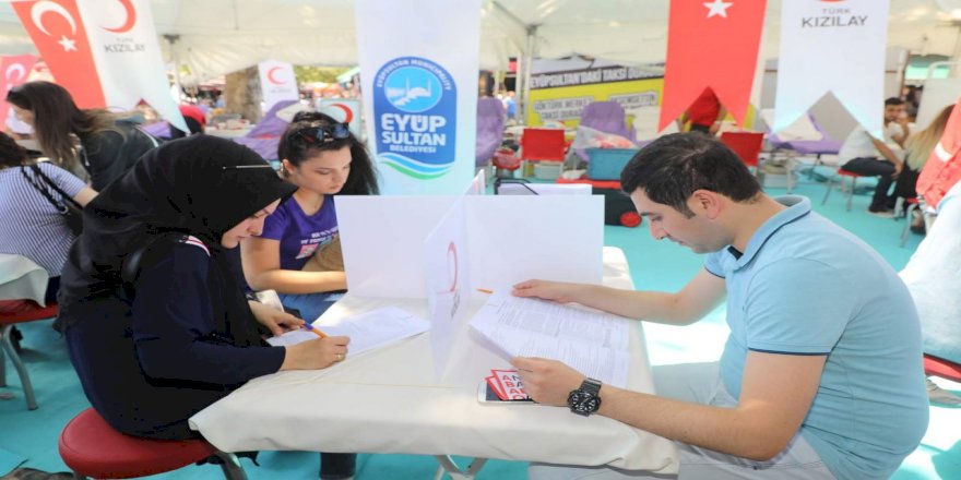 Kan vermenin önemini ortaya koymak için Eyüpsultan Meyanı’nda düzenlenen programa vatandaşlar büyük ilgi gösterdi. Programda 150 ünite kan toplandı.
