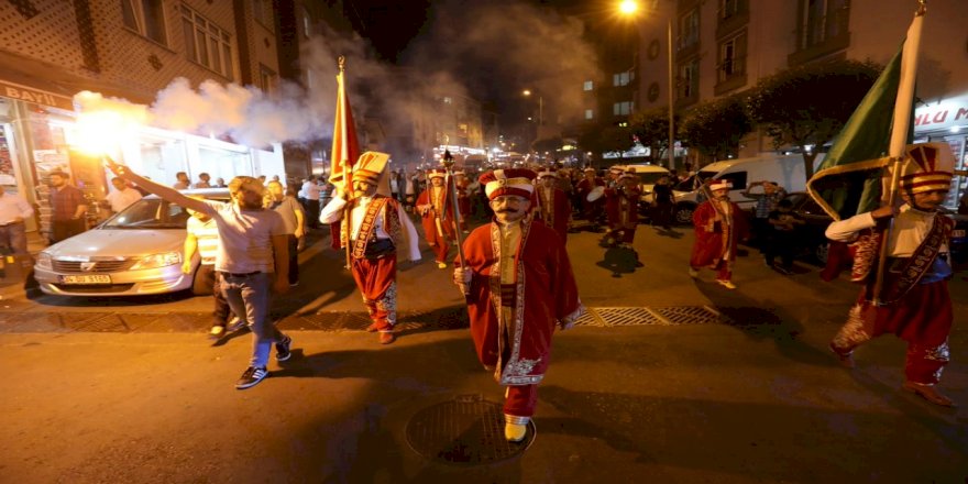 Yeşilpınar Begonya Sokak’ta verilen iftar sonrası Eyüpsultan Belediyesi Mehter Takımı eşliğinde başlayan Fetih Yürüyüşü, Özlem Çarşısı’nda son buldu.