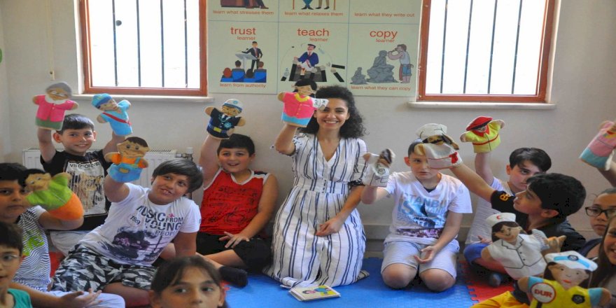 Düğmeciler Mahallesi’nde bulunan Dil Evi Yaz Okulu'nda öğrenciler, birbirinden farklı oyunlar oynayıp, etkinlikler yapıp, film izleyip, şarkı söyleyerek İngilizce öğreniyor.