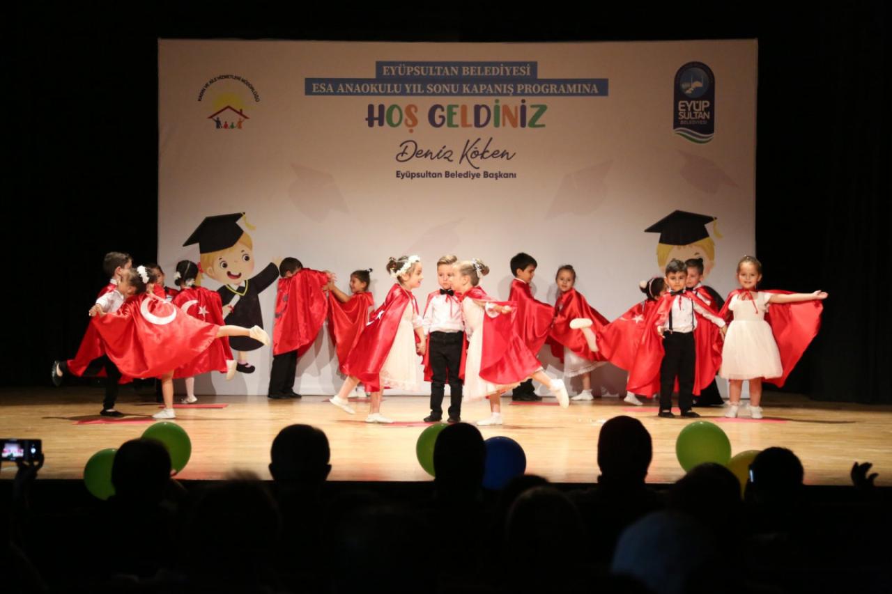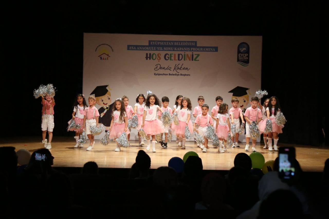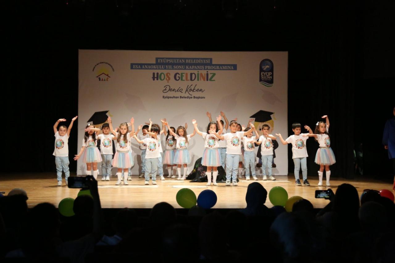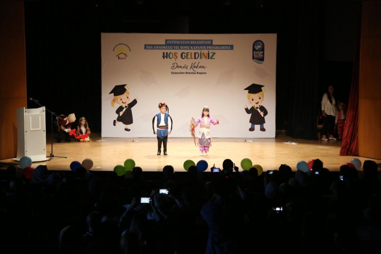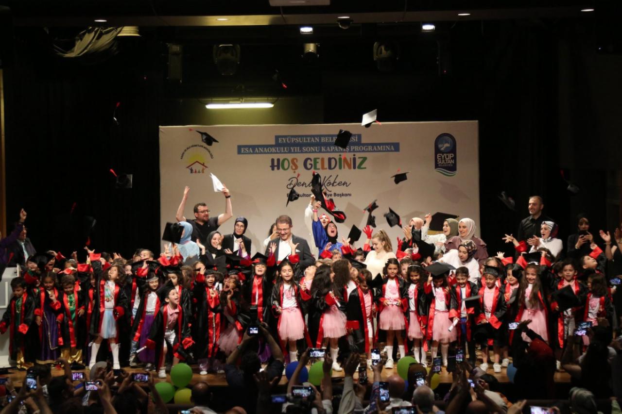 Eğitimlerini “Ezbere Değil Deneyime Dayalı Eğitim” prensibiyle sürdüren ESA’dan mezun olan minikler için düzenlenen tören, Başkan Deniz Köken’in katılımıyla, Eyüpsultan Kültür ve Sanat Merkezi'nde gerçekleşti.