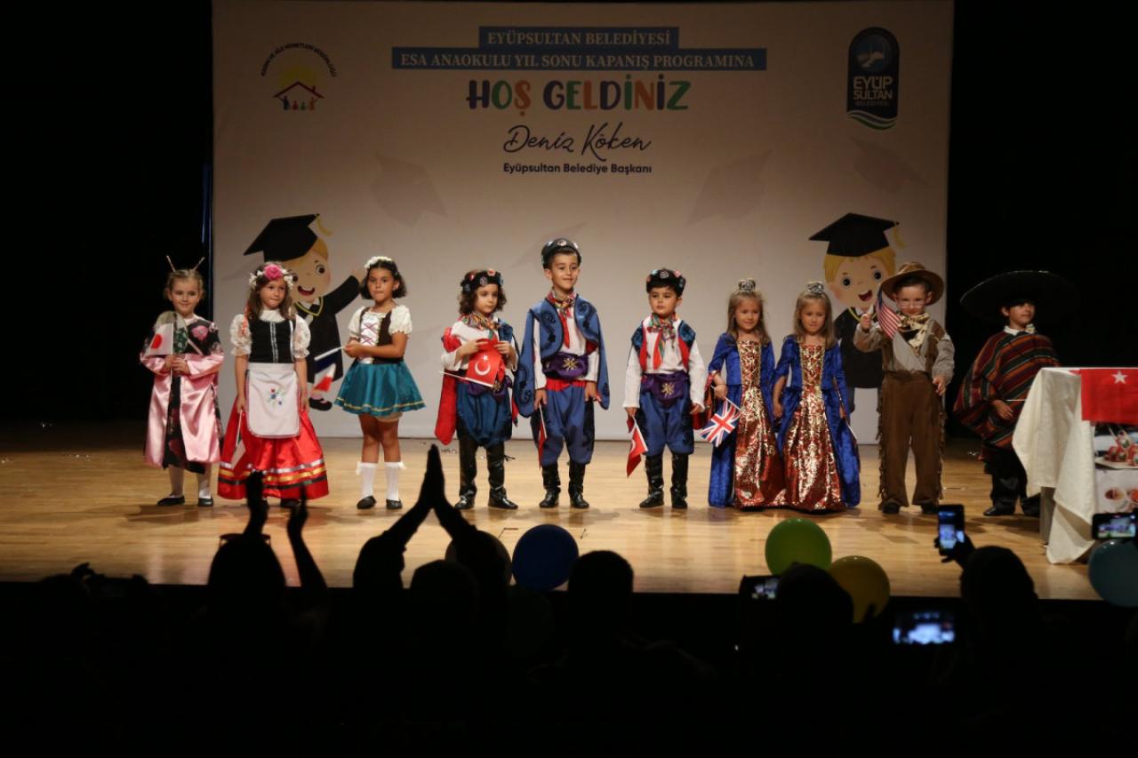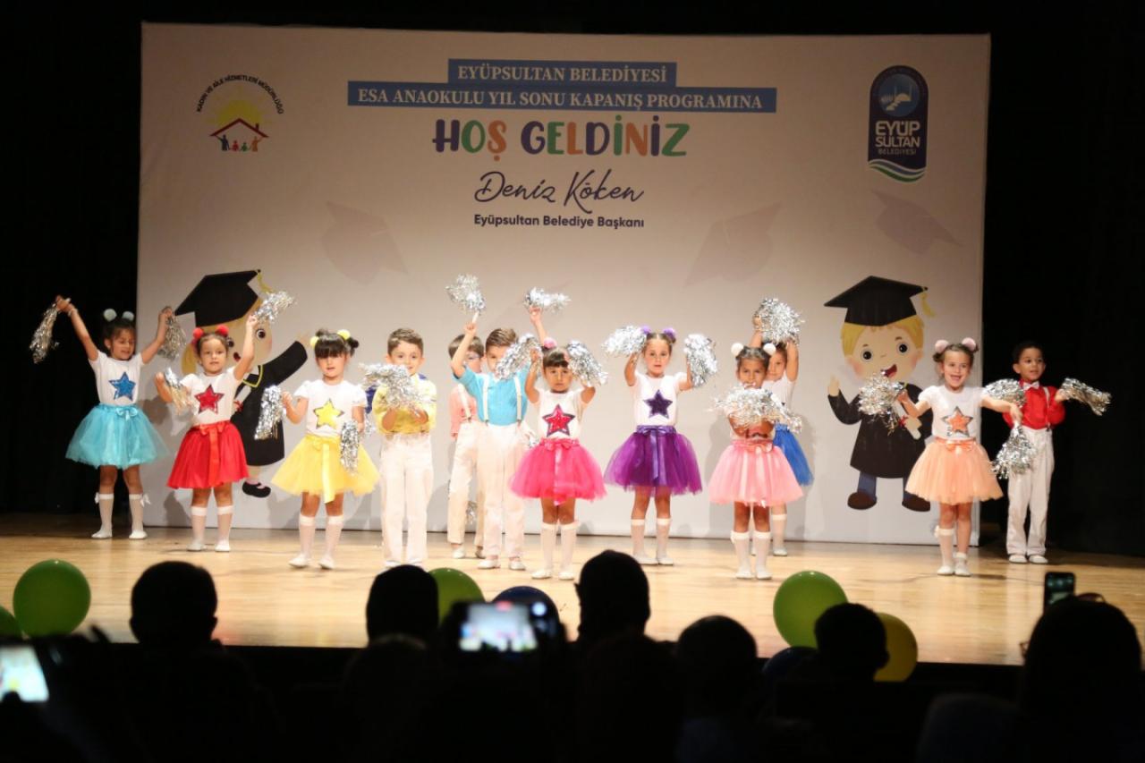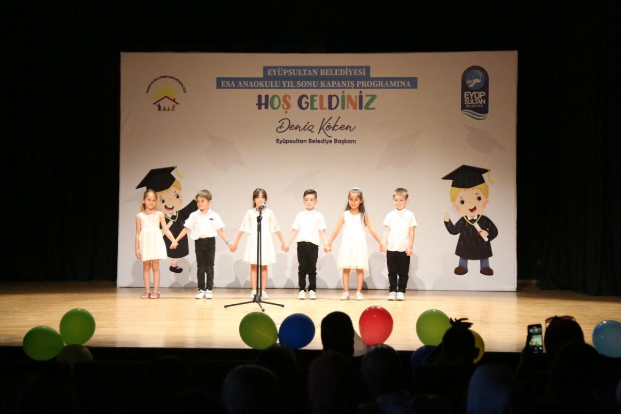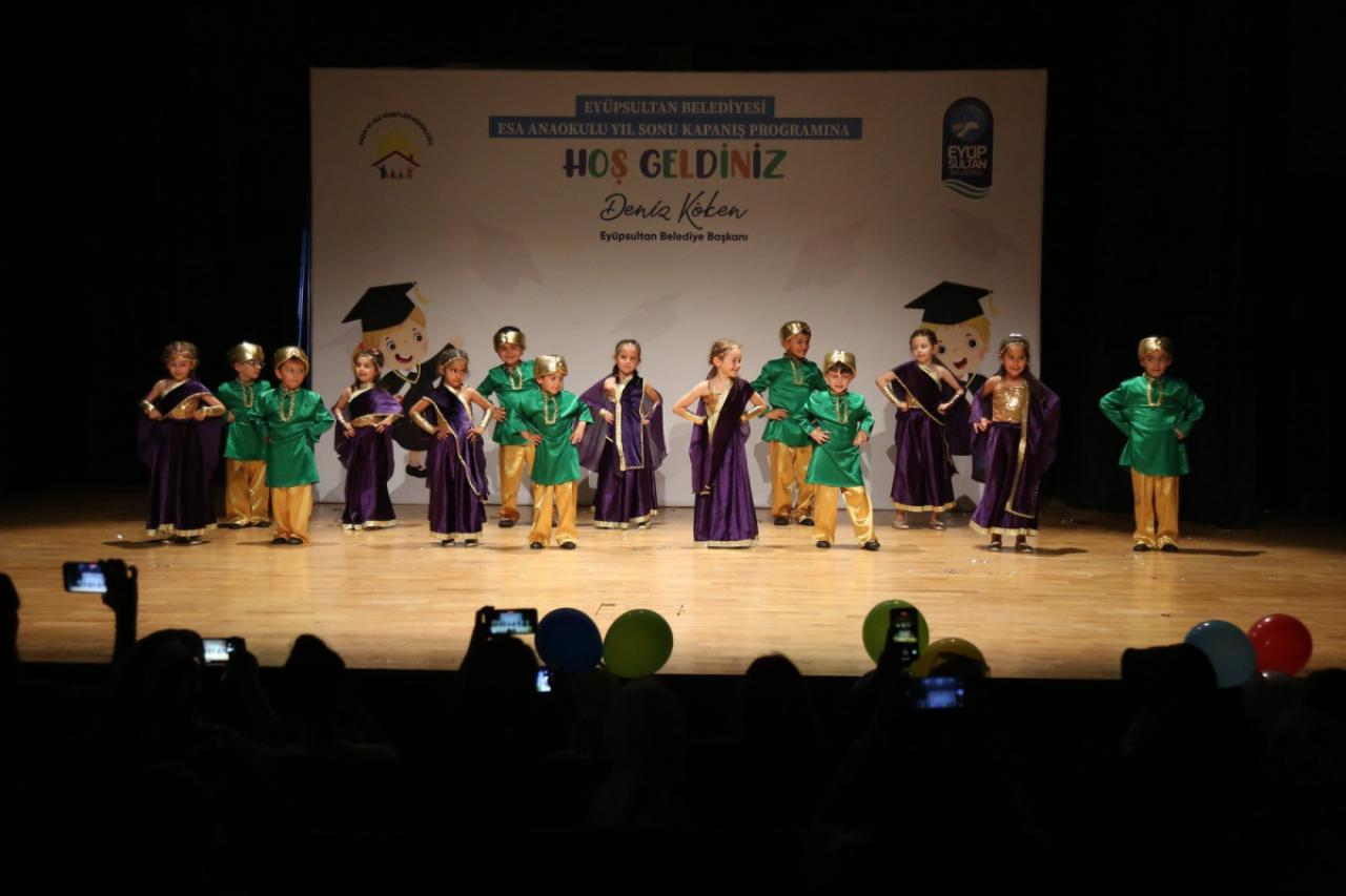 Eğitimlerini “Ezbere Değil Deneyime Dayalı Eğitim” prensibiyle sürdüren ESA’dan mezun olan minikler için düzenlenen tören, Başkan Deniz Köken’in katılımıyla, Eyüpsultan Kültür ve Sanat Merkezi'nde gerçekleşti.