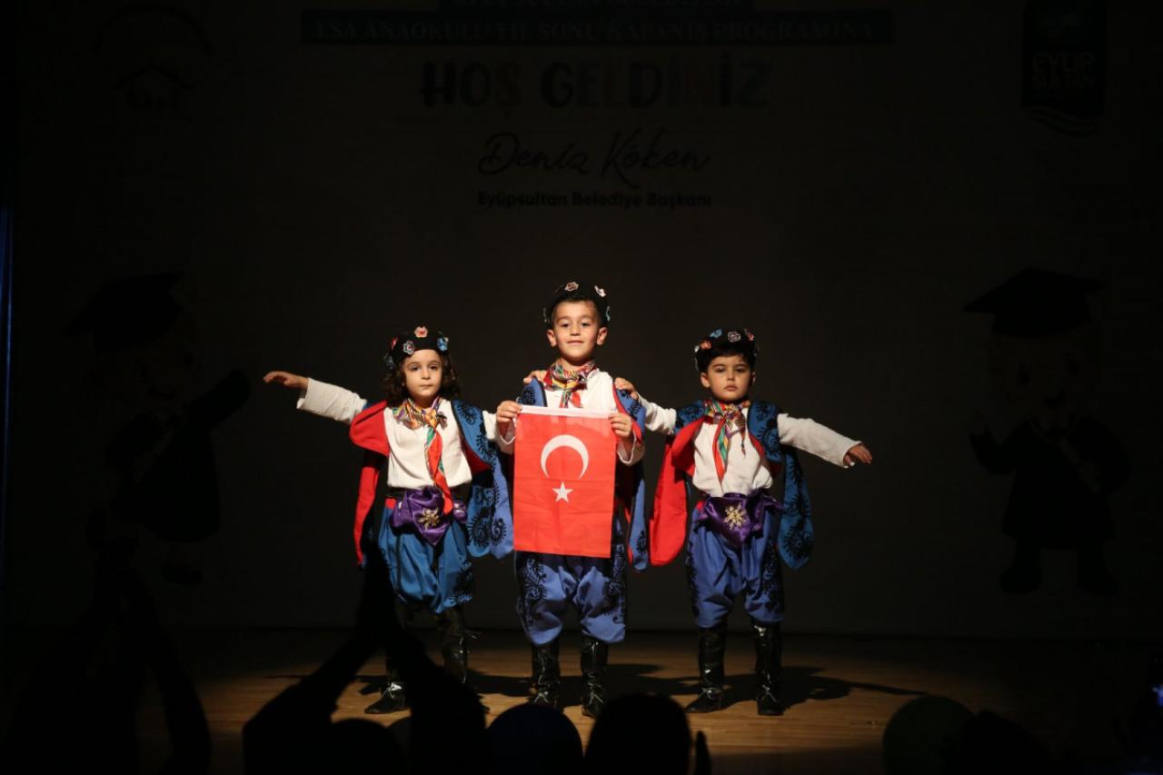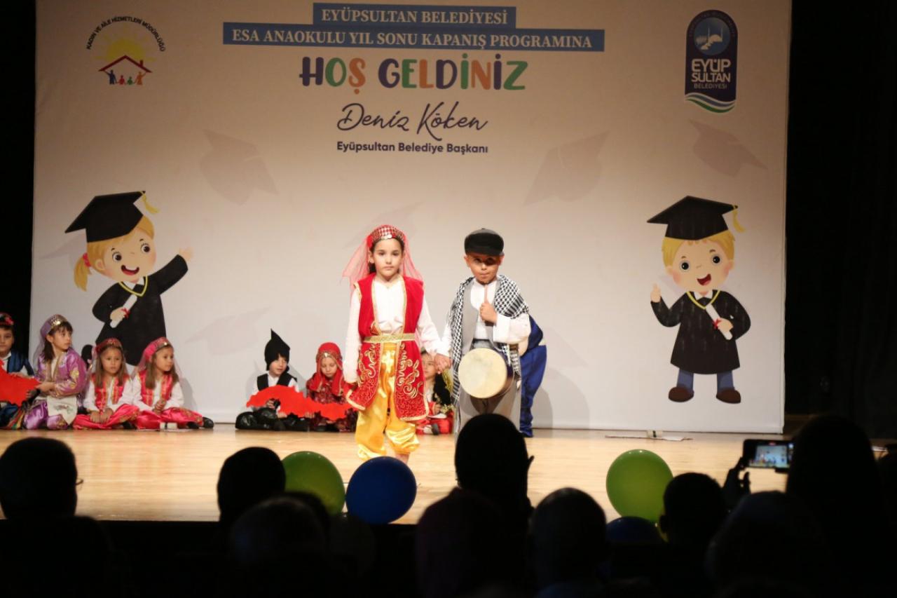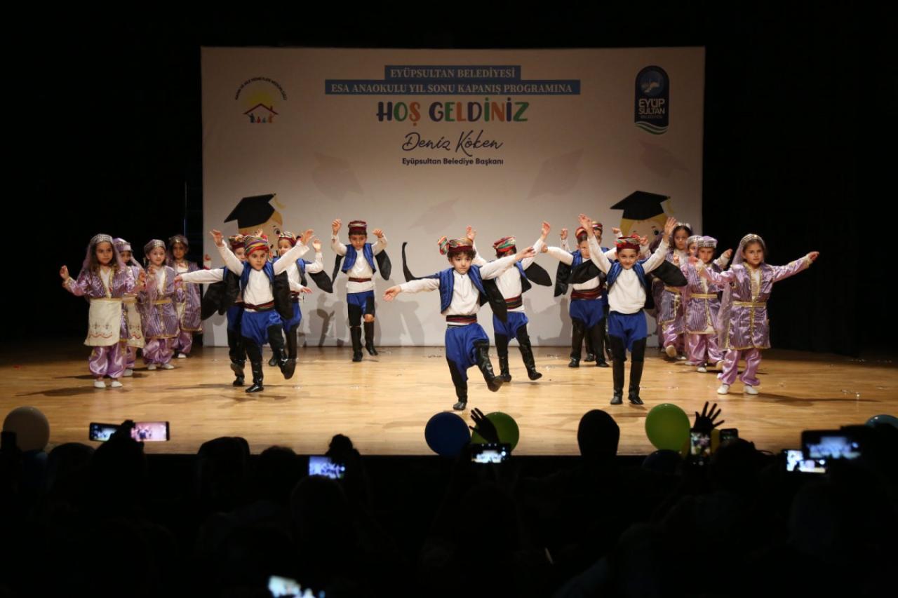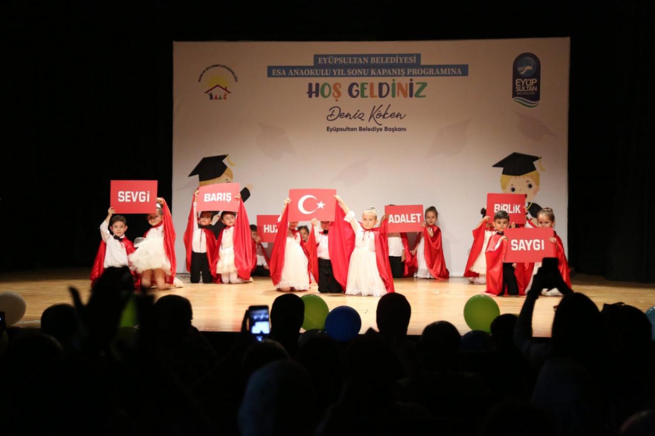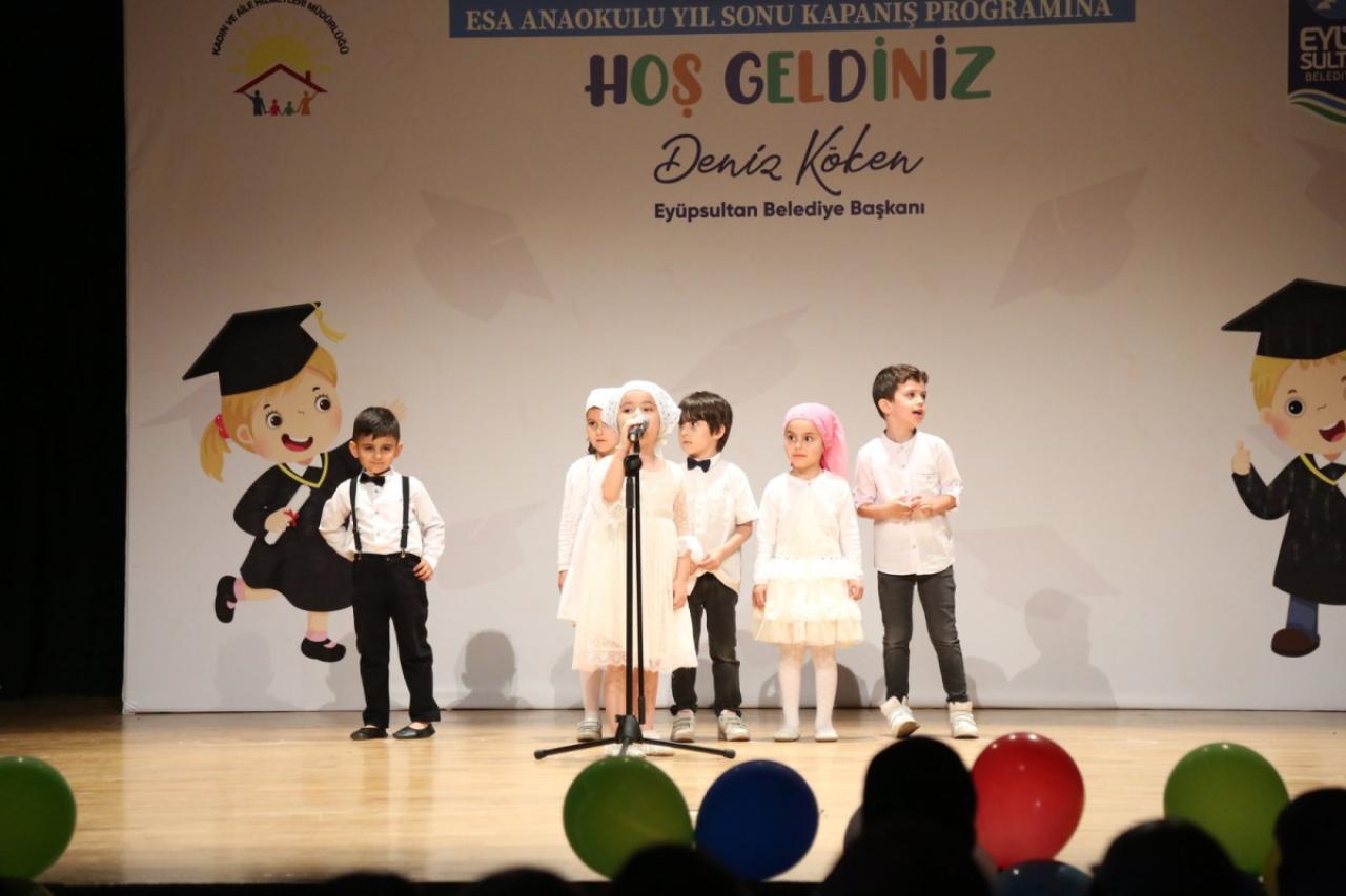 Eğitimlerini “Ezbere Değil Deneyime Dayalı Eğitim” prensibiyle sürdüren ESA’dan mezun olan minikler için düzenlenen tören, Başkan Deniz Köken’in katılımıyla, Eyüpsultan Kültür ve Sanat Merkezi'nde gerçekleşti.