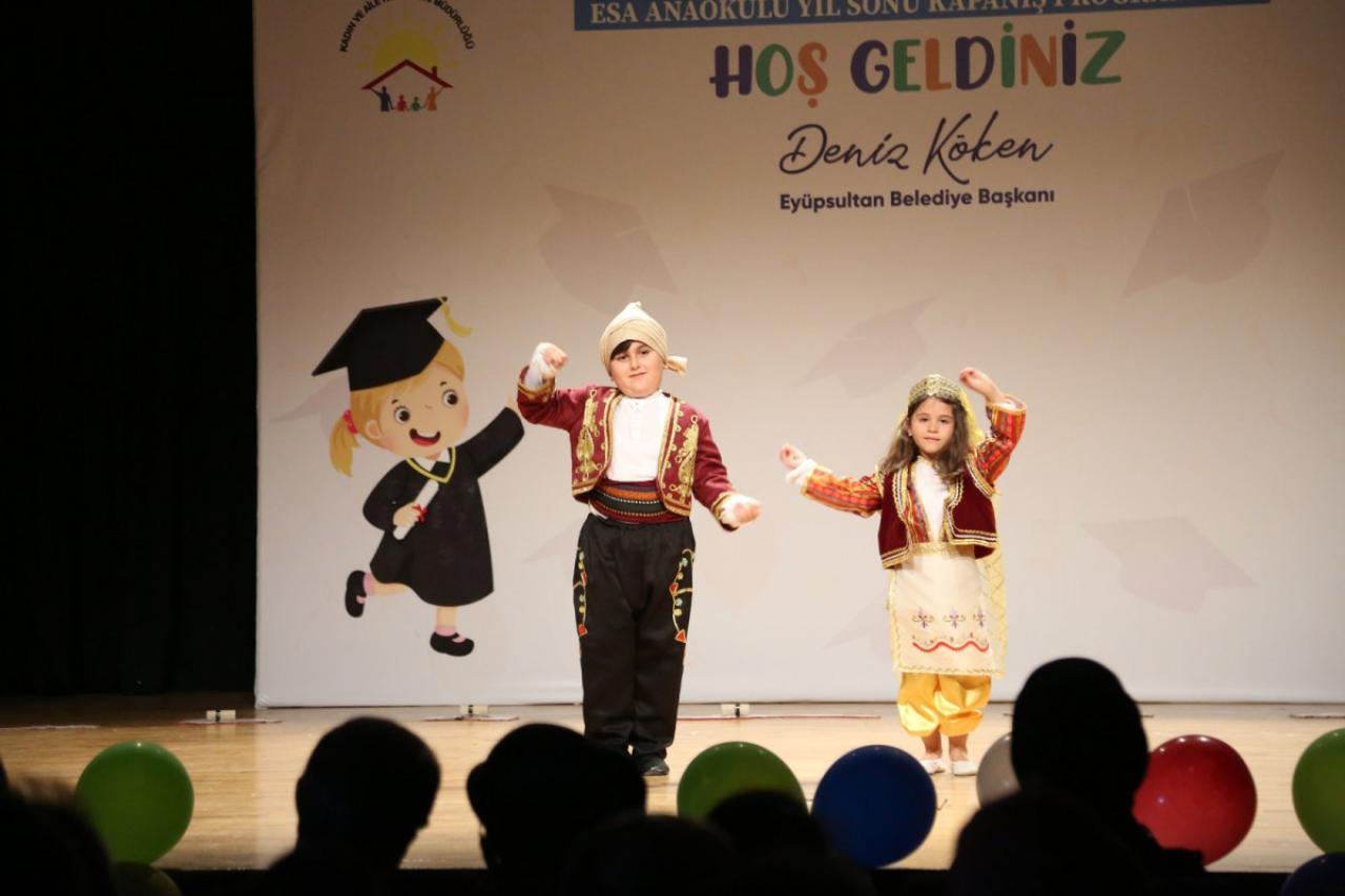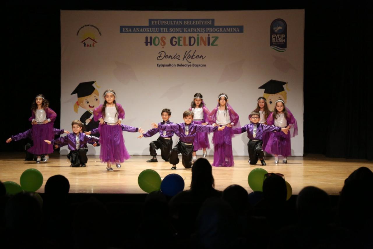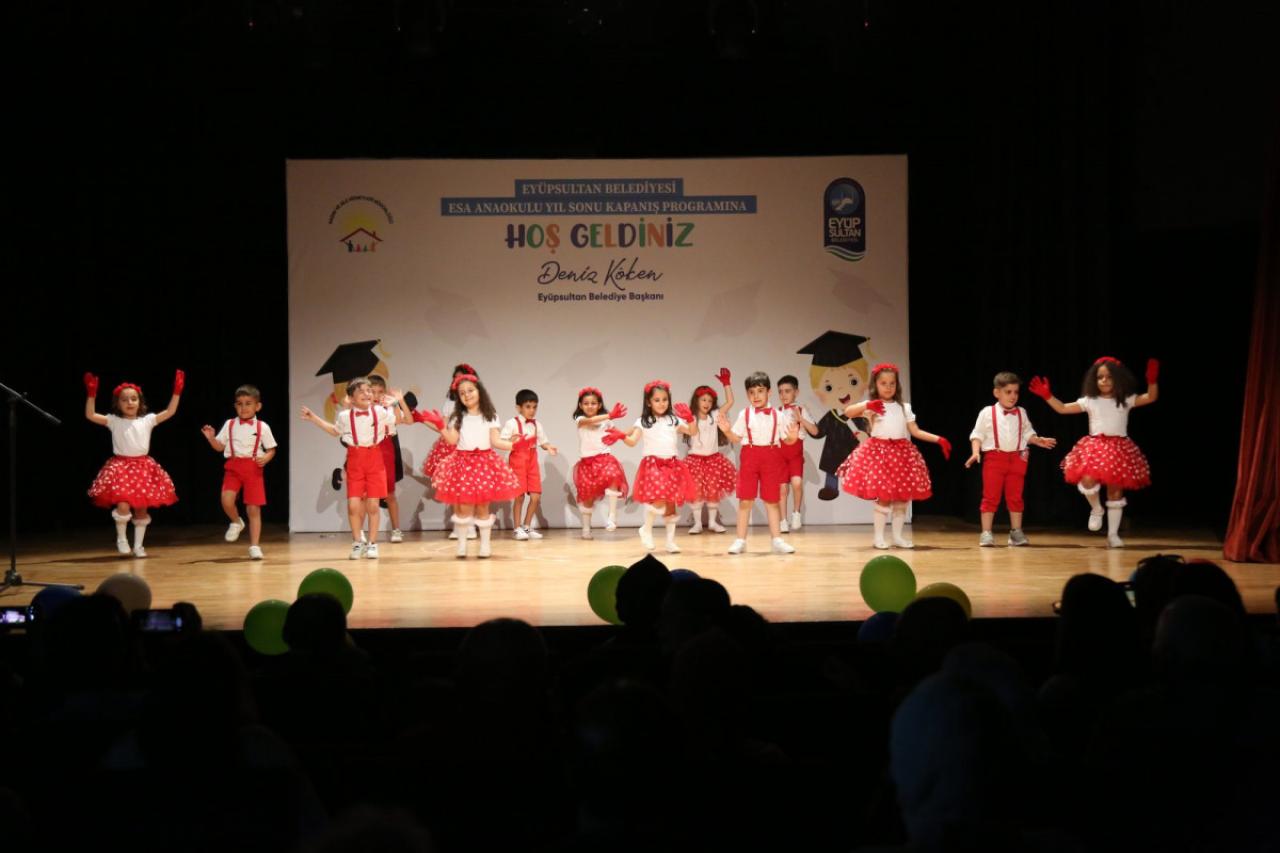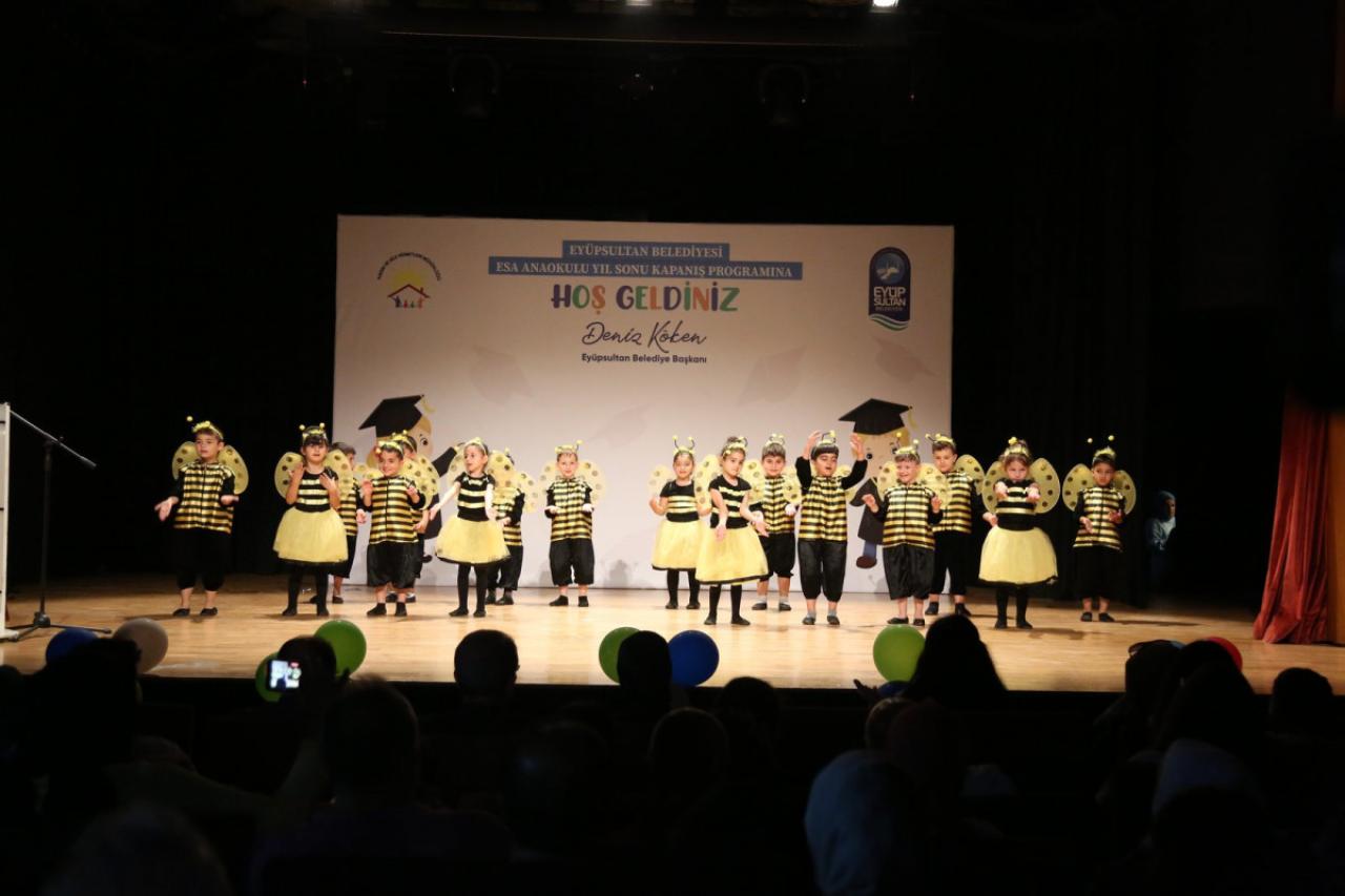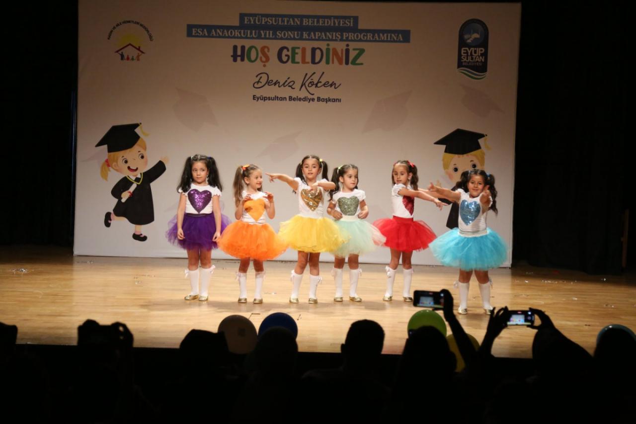 Eğitimlerini “Ezbere Değil Deneyime Dayalı Eğitim” prensibiyle sürdüren ESA’dan mezun olan minikler için düzenlenen tören, Başkan Deniz Köken’in katılımıyla, Eyüpsultan Kültür ve Sanat Merkezi'nde gerçekleşti.