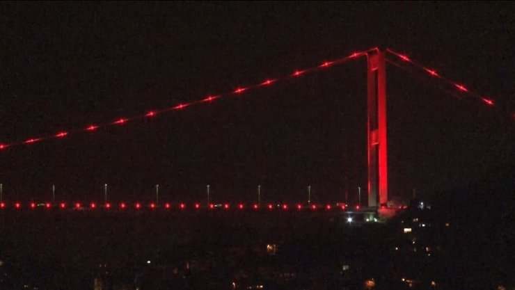 FATİH SULTAN MEHMET KÖPRÜSÜ "SARI-KIRMIZI" RENKLERLE AYDINLATILDI