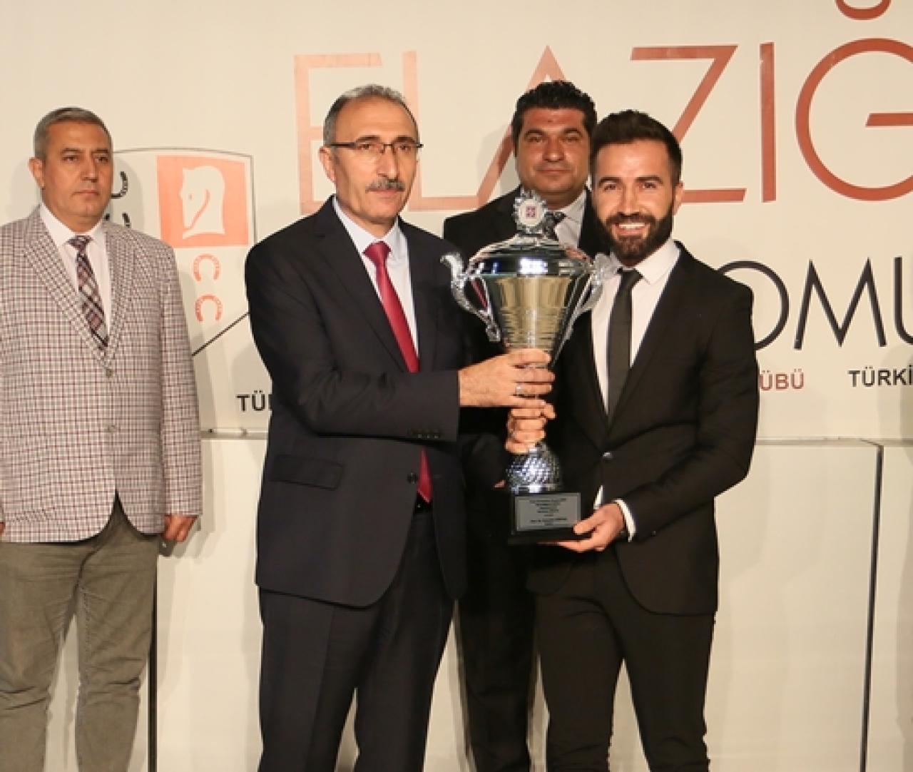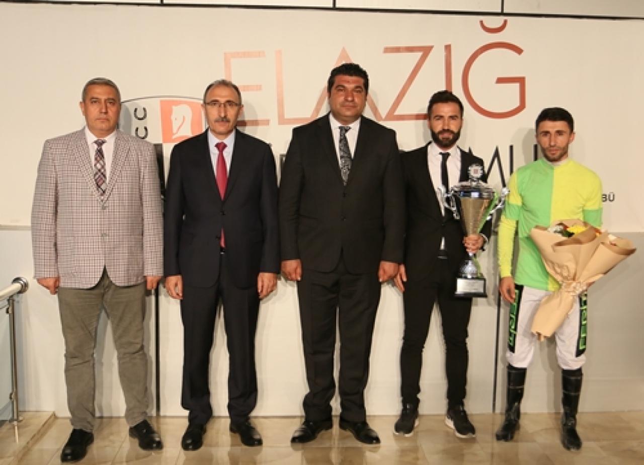 Koşu sonrası gerçekleştirilen törende, kazanan atın sahibi adına antrenörü Eyyüp Yardımcı’ya kupasını, Fırat Üniversitesi Rektörü Prof. Dr. Fahrettin Göktaş takdim etti.