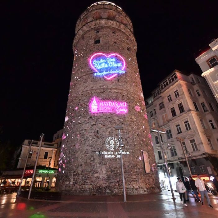 Beyoğlu Belediyesi, Anneler Günü dolayısıyla Beyoğlu’nun simgesi Galata Kulesi’nde özel bir etkinliğe ev sahipliği yaptı. 8 Mayıs günü saat 21.00’de başlayan etkinlikte; Cumhuriyetin Kurucusu Büyük Önder Mustafa Kemal Atatürk’ün annesi Zübeyde Hanım’ın, Cumhurbaşkanı Recep Tayyip Erdoğan’ın annesi Tenzile Hanım’ın ile sosyal medyadan gelen fotoğraflar Galata Kulesi’ne yansıtıldı. Beyoğlu Belediyesi’nin sosyal medya hesaplarından canlı yayınlanan etkinlikte ayrıca, terör örgütü tarafından şehit edilen Eren Bülbül’ün annesi Ayşe Bülbül, Yasin Börü’nün annesi Hatice Börü ile birlikte şehit anneleri ve Diyarbakır’da evlat nöbeti tutan annelerin fotoğrafları da kuleye yansıtıldı. Yerli ve yabancı turistlerin ilgisini çeken görsel şölende vatandaşlar kulenin önünde bol bol hatıra fotoğrafı çektirdi.