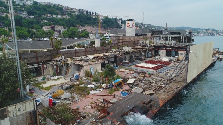 İmara aykırı yapılaşma nedeniyle yaklaşık 2 sene önce kaçak yapıların yıkıldığı Galatasaray Adası'nda işçiler söküm çalımlarına başladı. Boğazda kötü bir görüntü olmasını önlemek amacıyla adanın yan kısımlarının kapatıldığı görülürken söküm çalışmaları havadan görüntülendi.