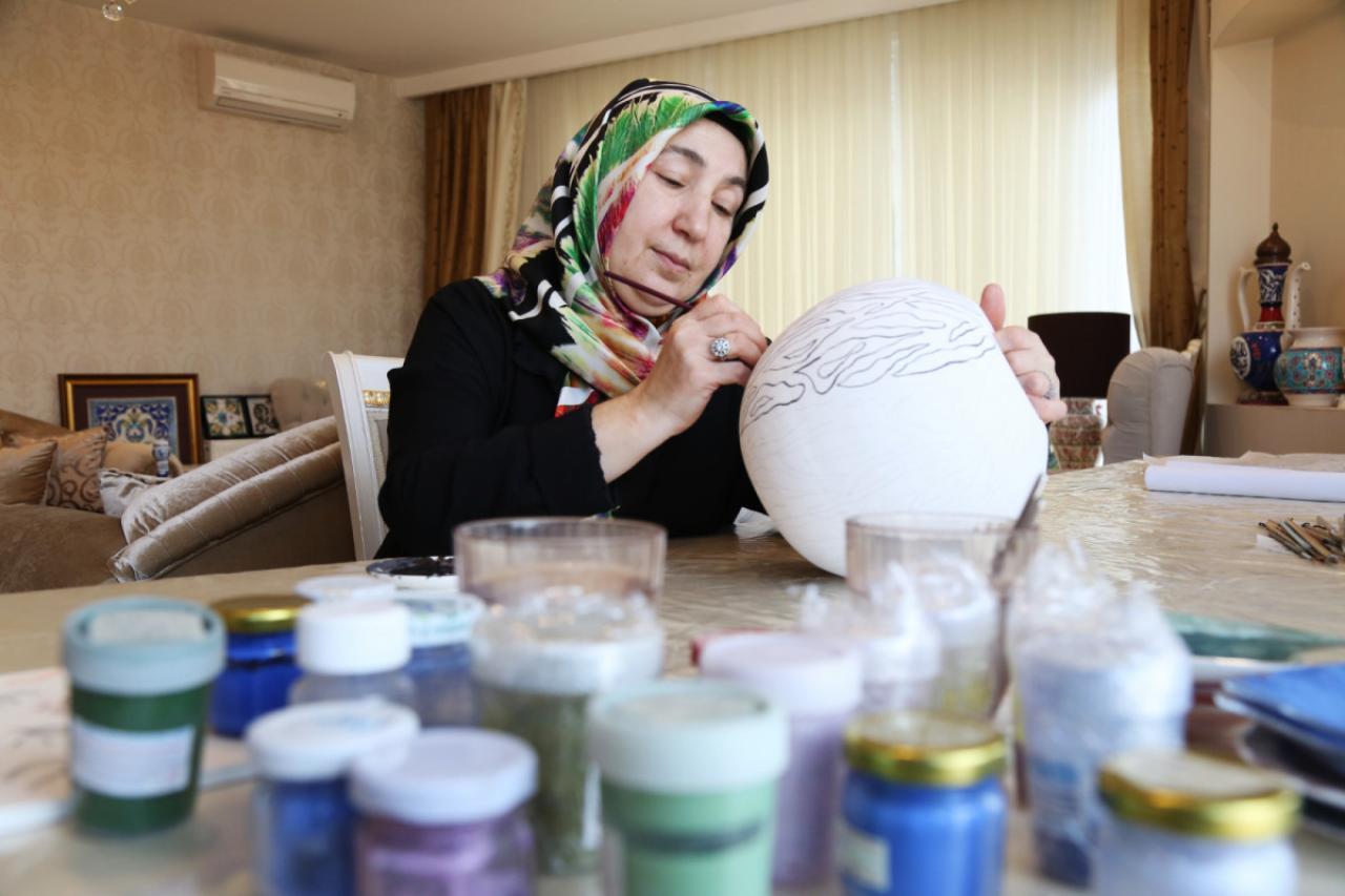 Annesinden bir sene sonra çini sanatı ile buluşan Tuba Ünlü ise dört yıldır çini sanatı ile uğraştığını belirterek “Annemin alt yapısı vardı, ben sıfırdan bu işe başladım. Eyüpsultan Belediyesi’nin verdiği kursların çok faydasını gördük. Dört yıldır çini sanatı ile ilgileniyorum. Şimdi annemle birlikte atölye çalışmaları yapıp, ürünlerimizi sosyal medya üzerinden satıyoruz” açıklamasını yapıyor.