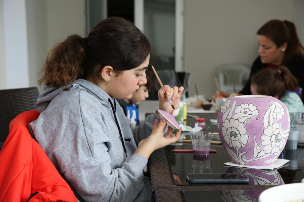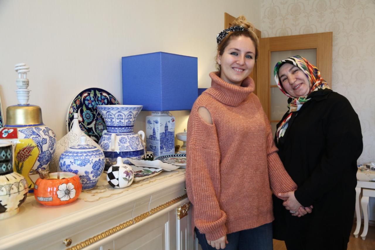 Birbirinden güzel çini ürünleri yapan ve bunların satışlarını sosyal medya üzerinden gerçekleştiren Fujen Puhaloğlu, “Tabii ki insanın kendi ekonomik özgürlüğünü kazanması ve kendi ayakları üzerinde durması güzel bir şey. Benim en büyük destekçim kızım Tuba. Bana fikirleriyle yön veriyor. Yaptığım ürünleri sosyal medya üzerinden ve eş dost vasıtasıyla satıyorum. Ayrıca benim gibi çini sanatçısı olan kızımla birlikte anne çocuk workshopları düzenliyoruz. Bize bu imkanı sunan başta belediye başkanımız Deniz Köken olmak üzere, emeği geçen tüm hocalarımıza teşekkür ediyorum” şeklinde konuştu.