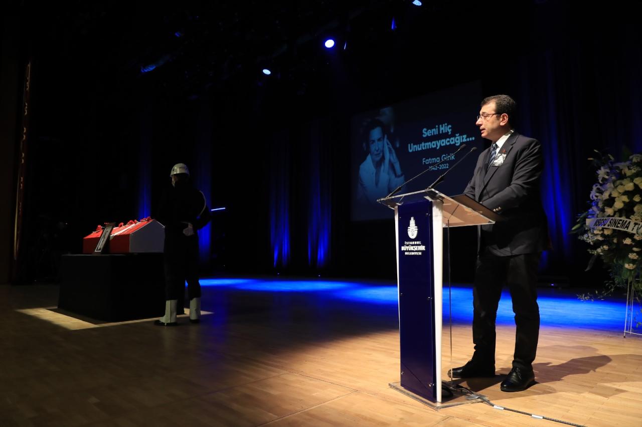 Fatma Girik’in vefat ettiği gün olan 24 Ocak’ın, ülke tarihi için acı bir gün olduğunu hatırlatan İmamoğlu, “Hem Uğur Mumcu'yu hem Gaffar Okan'ı hem İsmail Cem’i aynı tarihte kaybetmenin acısını yaşarken, o acı güne, Türk sinemasının en önemli isimlerinden birisi, Fatma Girik de eklendi. Hepsine rahmet diliyorum. Devirleri daim olsun” dedi. Girik’in sanatçı kişiliğinin yanında, sosyal yönünün de çok kuvvetli olduğunun altını çizen İmamoğlu, “Daima halkın yanında, toplumsal sorunları takip eden, emekçinin yanında olan bir sanatçı Fatma Girik. Aynı zamanda dürüst, halkçı, Atatürkçü bir sanatçı Fatma Girik. Sağlam karakteriyle hep örnek gösterilen bir şahsiyetten bahsediyoruz. İnsanların ruhunda böyle bir duruşu simgeliyordu” diye konuştu.