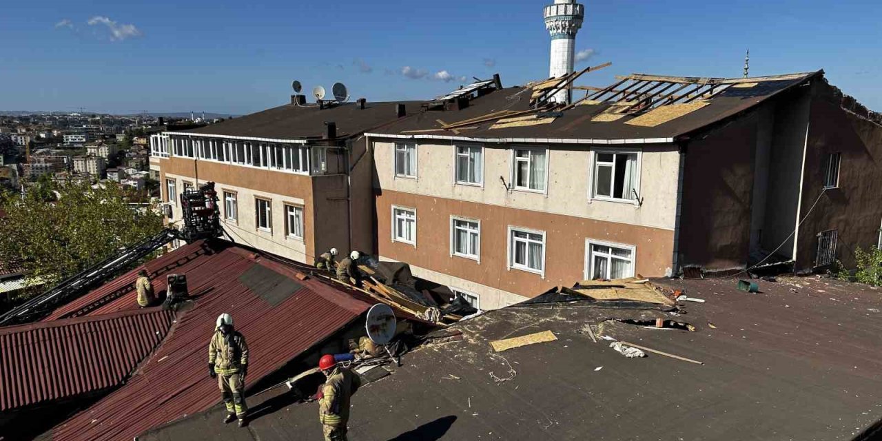 KUVVETLİ RÜZGARDA UÇAN ÇATI İKİ BİNANIN ÇATISINA SAVRULDU