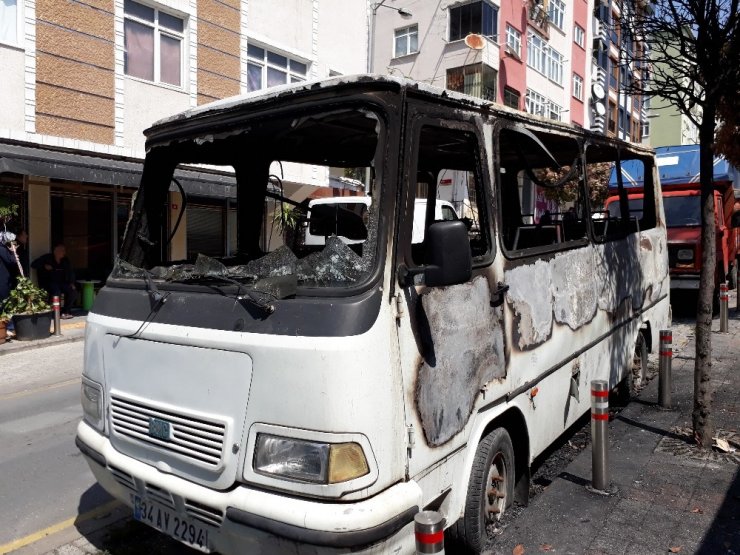 Güngören'de, Park halindeki minibüs alev alev yandı