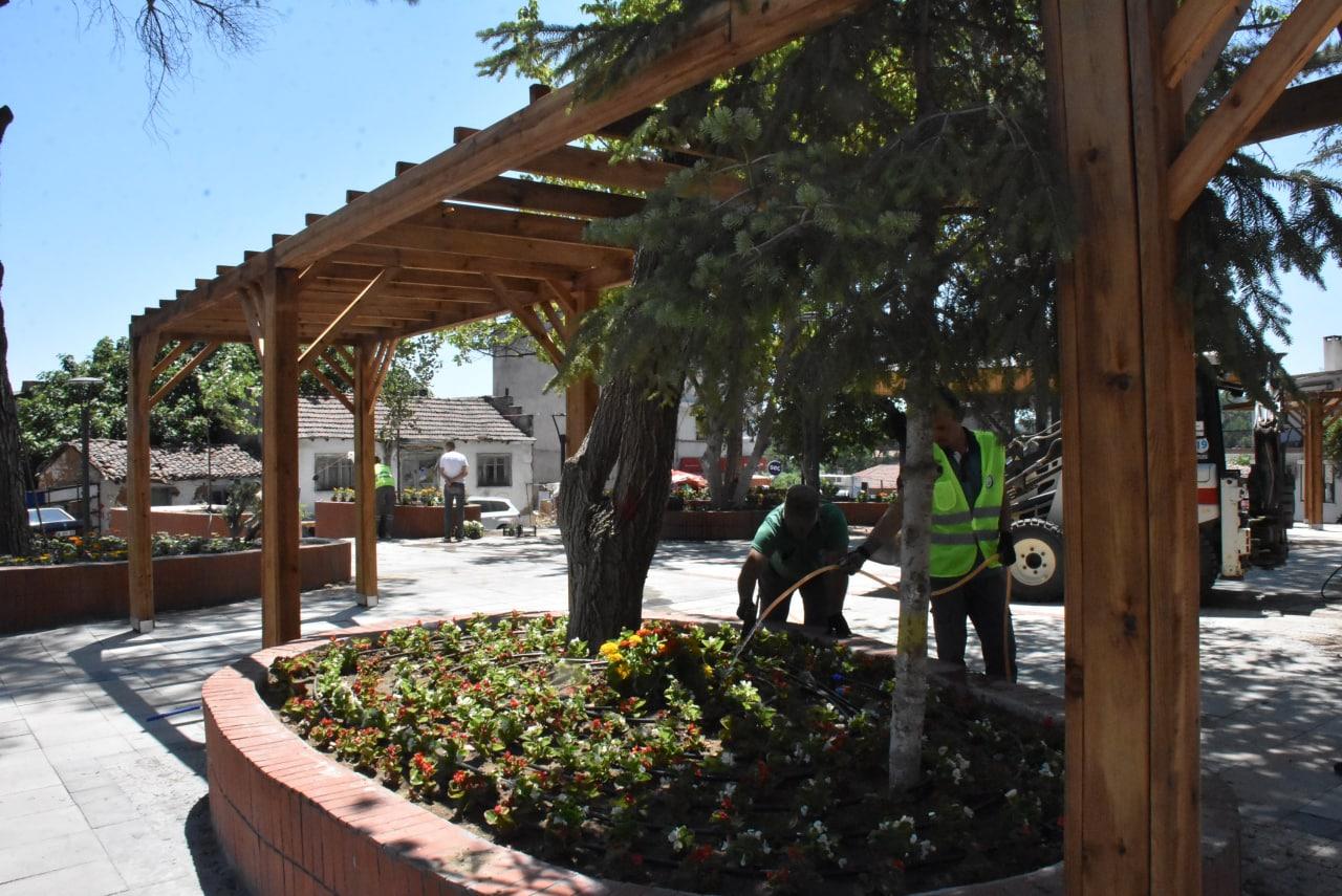 Edremit Belediyesi Fen İşleri Müdürlüğü’nün yürüttüğü Güre Köy Meydanı düzenlemesinde tamamlanırken 5560 m2’lik alanda Park ve Bahçeler ekipleri tarafından da renklendiriliyor. Çevredeki dokuyu koruyarak hızla çalışmalarını sürdüren belediye ekipleri otomatik sulama sistemini kurduktan sonra fidanları da toprakla buluşturdu. 3 adet çınar ağacı, 2 adet zeytin ağacı, süs bitkileri ve rengarenk yüzlerce çiçekle donatılan yeni köy meydanı, mahalle sakinleri ve misafirler için yeni ve modern bir yaşam alanı haline getirildi.