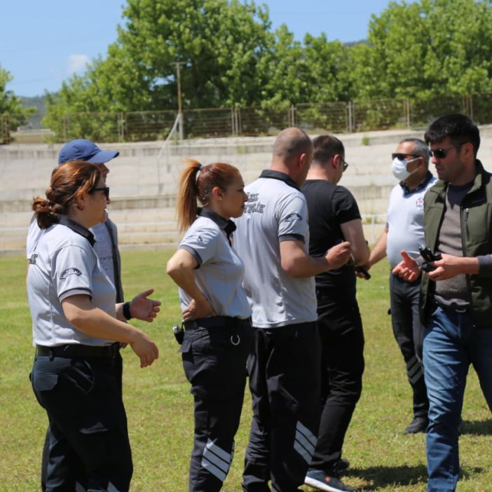 Göz yaşartıcı gazın yasal dayanakları, kullanım şekli ve hangi hallerde kullanılabileceği konularının ele alındığı eğitimin ikinci bölümü ise Güreş Sahası’nda açık alanda uygulamalı olarak gerçekleştirildi.