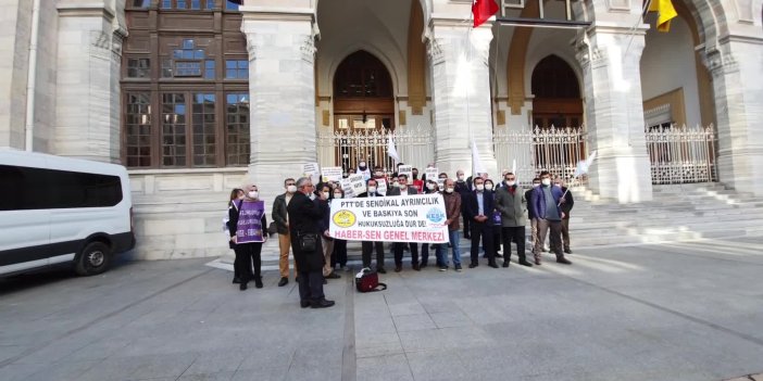 Sirkeci'deki Büyük Postane önünde toplanan Haber-Sen üyeleri, PTT’de yaşanan sendikal ayrımcılık ve 5 çalışanın istekleri dışında çeşitli bahanelerle başka yerlere gönderilmesiyle ilgili eylem yaptı. Güvenlik güçlerinin genişönlemler aldığı alanda Haber-Sen Genel Başkanı Mesut Balcan bir basın açıklaması yaptı.