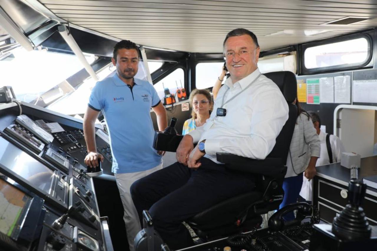 Hatay Büyükşehir Belediye Başkanı Doç. Dr. Lütfü Savaş, HADO limanında demirleyen Piyale Paşa gemisinde incelemelerde bulunarak yetkililerden bilgi aldı.