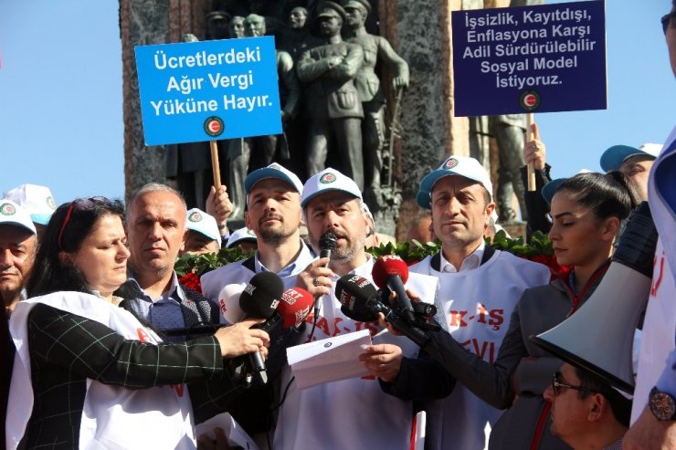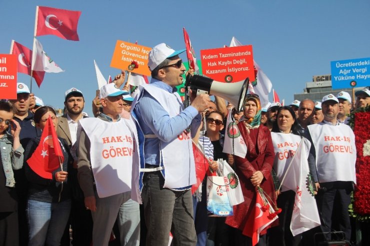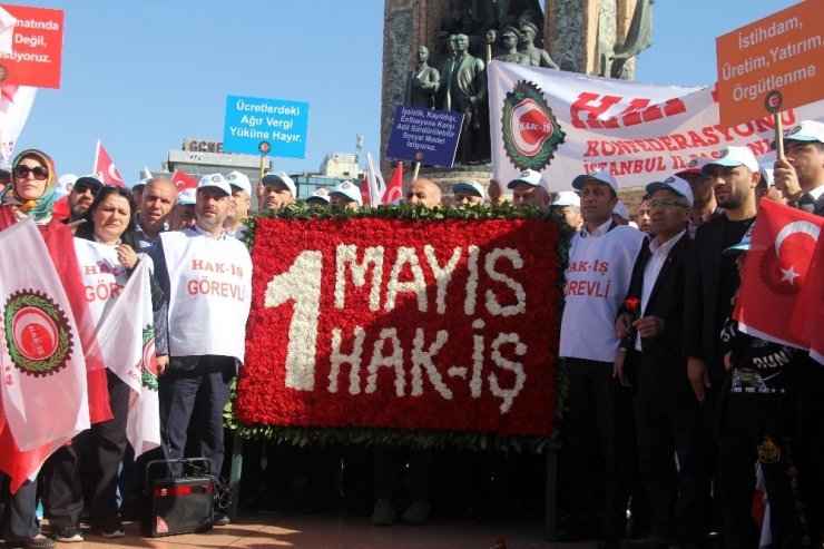 HAK-İŞ üyeleri, 1 Mayıs Emek ve Dayanışma Günü nedeniyle Taksim'deki Cumhuriyet Anıtı'na çelenk bıraktı. Sendika adına açılamada bulunan HAK-İŞ İstanbul İl Başkanı Mustafa Şişman, "Bugün tüm Türkiye'den sesleniyoruz. Bizler haklarımız için, özgürlüklerimiz için, demokrasi için, insanca bir hayat, adil bir dünya için alanlardayız" dedi.