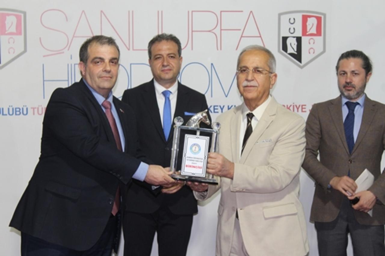 Yarışın ardından düzenlenen törende kazanan safkanın sahibi adına M. Nabi Aksoy'a kristal şildini, Harran Üniversitesi Veteriner Fakültesi Dekanı Prof. Dr. Nihat Denek takdim etti.