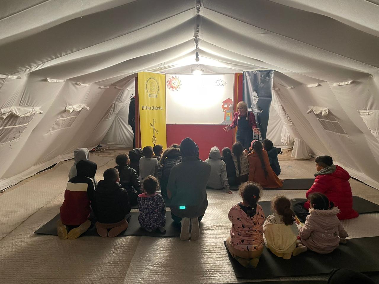 İstanbul Büyükşehir Belediyesi (İBB) Kültür Dairesi Başkanlığı, deprem bölgesindeki çadır kent alanlarında çocuklar için resim, yaratıcı drama, mim atölyeleri, çocuk tiyatrosu, illüzyon, pandomim gösterileri yapmaya devam ediyor. Mobil etkinlik ekipleri Samandağ, Defne ve Antakya’nın mahalleleri ve köylerindeki çocuklarla bir araya geliyor.