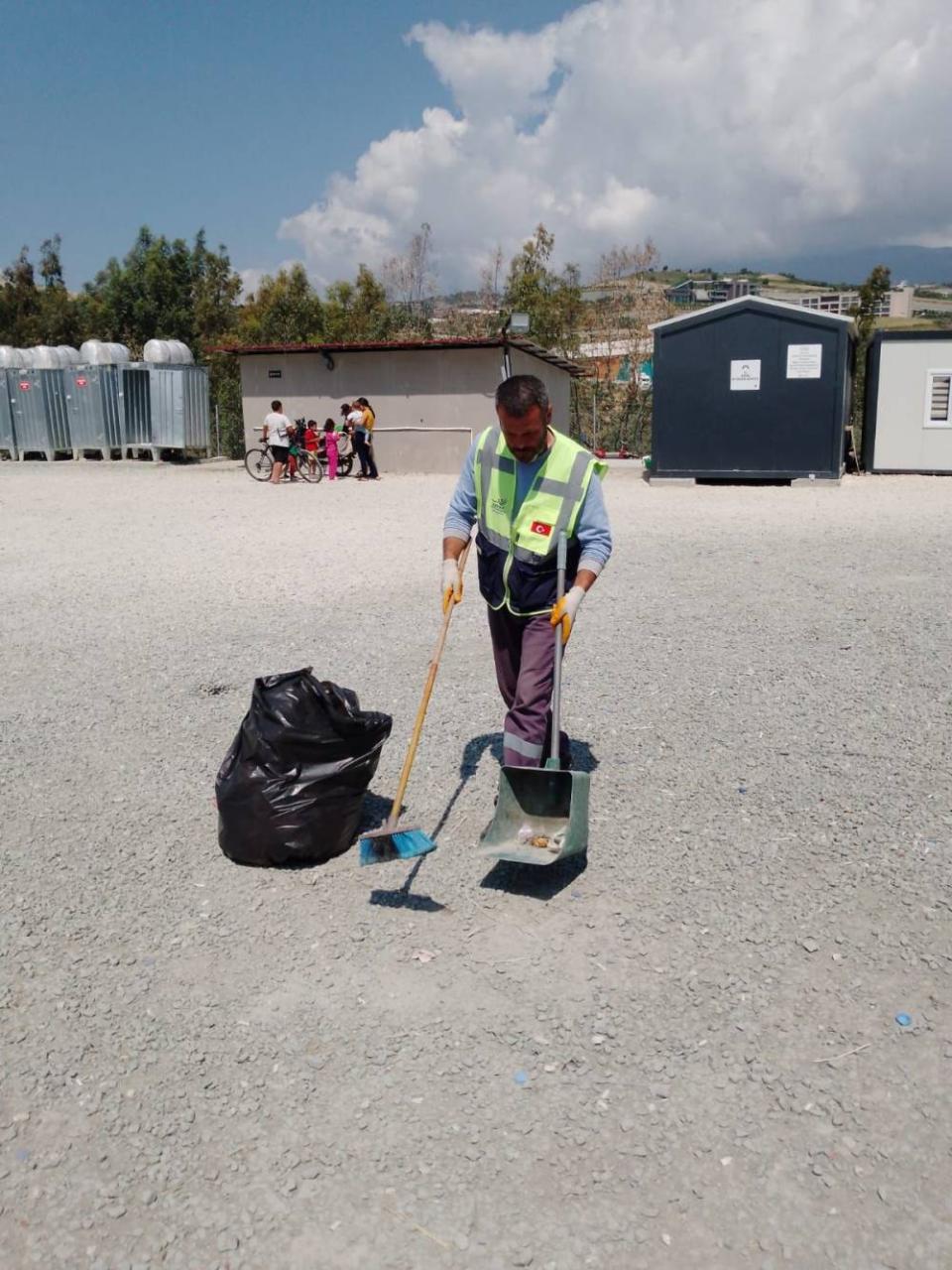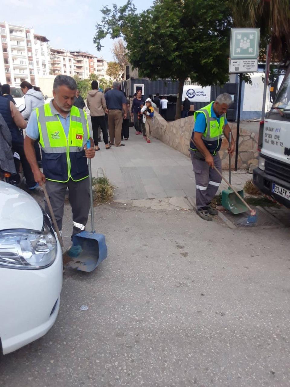 Çadırkentler ve konteyner kentlerde talebe bağlı olarak yapılan temizlik çalışmalarının yanı sıra Büyükşehir Belediyesi, il genelinde enkaz kaldırma çalışmaları yapıldıktan sonra temizlik çalışmalarını mobil temizlik ekibi ile hizmet veriyor.