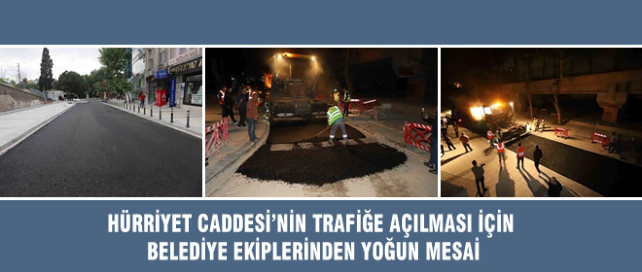 HÜRRİYET CADDESİ’NİN TRAFİĞE AÇILMASI İÇİN BELEDİYE EKİPLERİNDEN YOĞUN MESAİ