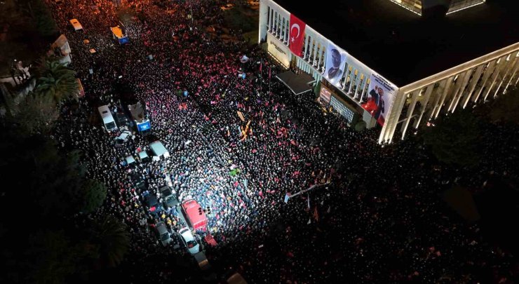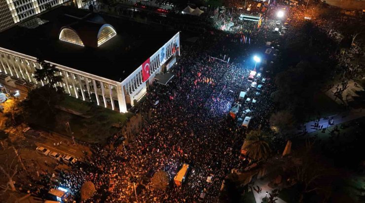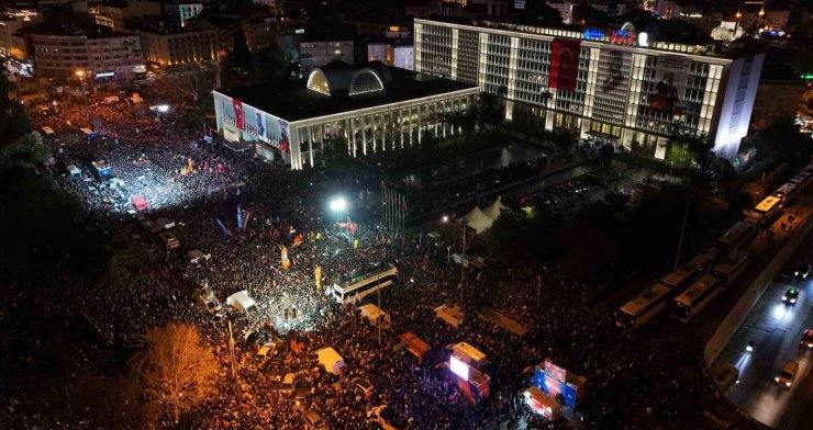 İBB BİNASI ÖNÜNDEKİ KALABALIK HAVADAN GÖRÜNTÜLENDİ