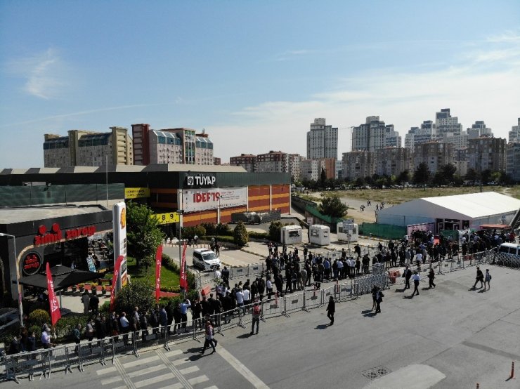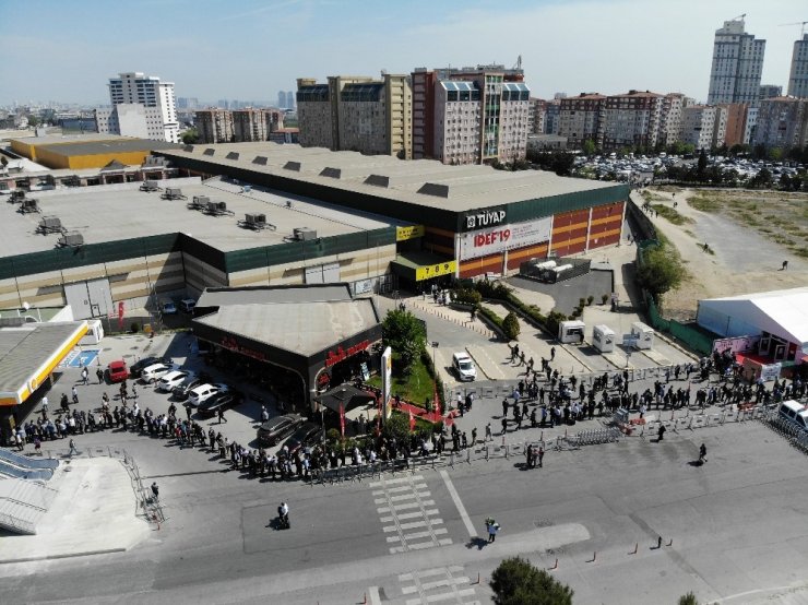 1 Mayıs Emek ve Dayanışma gününün resmi tatil olmasını fırsat bilen İstanbullular, TÜYAP Fuar ve Kongre Merkezi'nde düzenlenen IDEF'19 14. Uluslararası Savunma Sanayii Fuarı'na akın etti. Fuar alanına çıkan yollarda araç yoğunluğu yaşandı. Fuar merkezinin önünde sıra bekleyen vatandaşlar ise uzun kuyruklar oluşturdu. Yoğunluk nedeniyle fuarın çevresinde bulunan otoparklar dolma noktasına gelirken trafik polisleri trafiğin akıcı hale gelmesi için yoğun çaba sarf etti. Vatandaşların fuara gösterdiği yoğun ilgi havadan görüntülendi. Görüntülerde uzun araç ve insan kuyrukları yer alıyor.