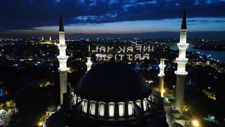 On bir ayın sultanı Ramazan Ayı'nda iftarını Süleymaniye'de yapmak isteyen vatandaşlar saatler öncesinden tarihi kuru fasulyecilere akın etti. Süleymaniye Camii'ne asılan mahyaların gün batımıyla birleşen manzarası da havadan çekilen görüntüleriyle kendine hayran bıraktı.