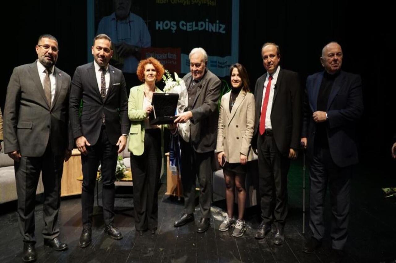 Söyleşi sonunda Avcılar Belediye Başkanı Turan Hançerli ve eşi Deniz Hançerli, İlber Ortaylı’ya çiçek takdim etti.