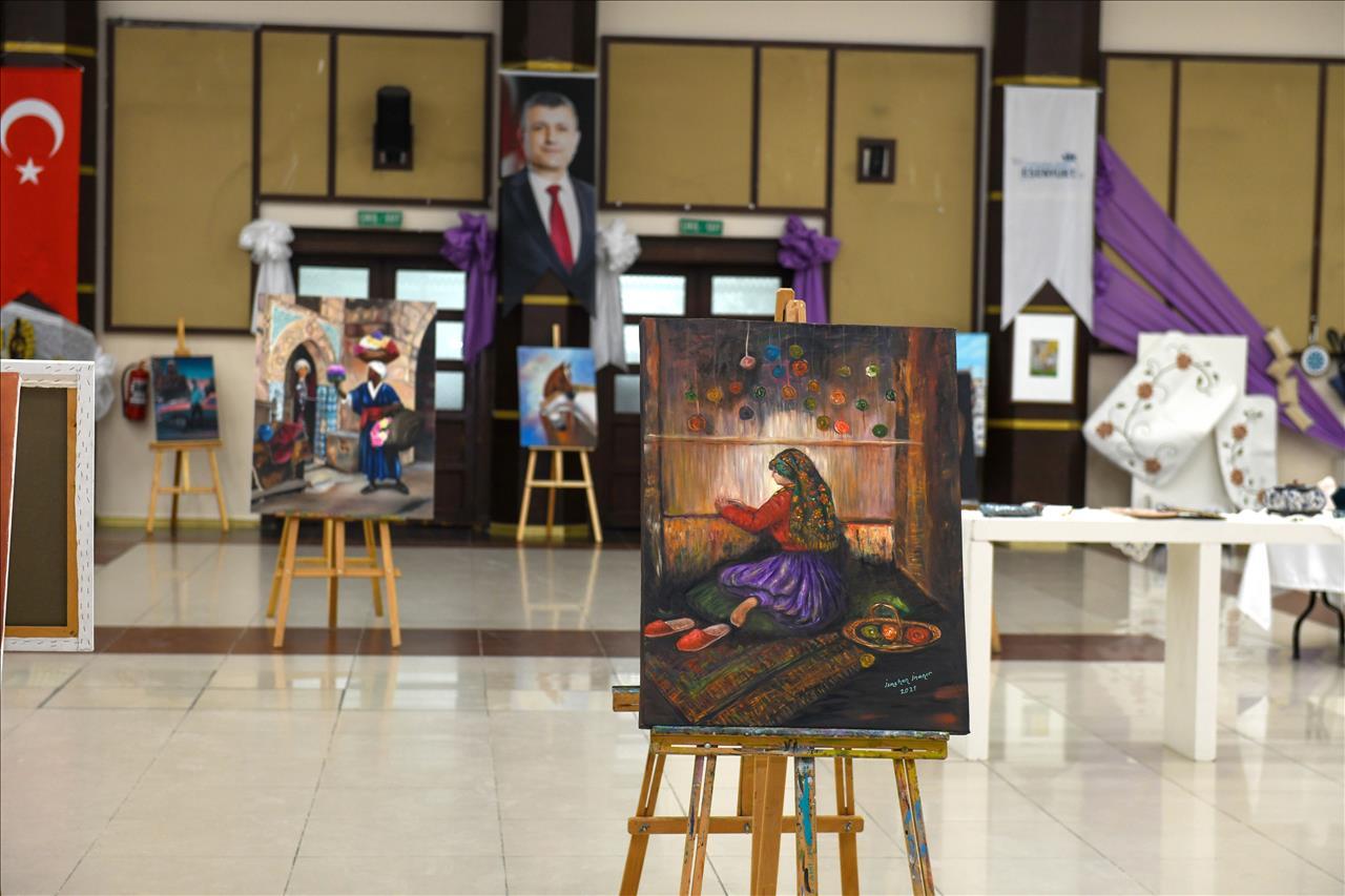Esenyurt Belediyesi, ilçedeki kadınların ekonomisine katkıda bulunmak ve sanat alanında çalışmalarını desteklemek amacıyla hem kurslar düzenliyor hem de üretilen ürünleri sergiliyor. Esenyurt Kültür Merkezi’nde düzenlenen “Sene Sonu Karma Sergisi” ile belediye bünyesindeki kültür merkezlerinde eğitim gören kursiyer kadınların el emeği ürünleri sergilendi. Açılışını Esenyurt Belediye Başkanı Kemal Deniz Bozkurt’un yaptığı karma sergide El Sanatları, Resim, Heykel, Halı Dokuma, Modelistlik gibi alanlarda eğitim gören çok sayıda kadının el emeği göz nuru ürünü beğeniyle karşılandı. Başkan Bozkurt’un her ürünü özveriyle incelediği emek ve yetenek dolu sergi, vatandaşlar tarafından yoğun bir ilgiyle karşılandı.