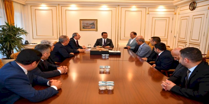 İstanbul Büyükşehir Belediye (İBB) Başkanı Ekrem İmamoğlu, İstanbul Pazarcılar Odası Başkanı Mesut Şengün ile oda yöneticilerini Saraçhane'deki makam odasında kabul etti. Tebrik ziyaretinin ardından İmamoğlu ve Şengün, kameraların karşısına geçti. İmamoğlu, ziyaret sırasında sektörün sorunlarını da konuştuklarını belirterek, semt pazarlarının bazı düzenlemelere ihtiyacı olduğunu vurguladı. "Sayın Başkan ve yöneticilerle bunları konuştuk" diyen İmamoğlu, şunları söyledi: