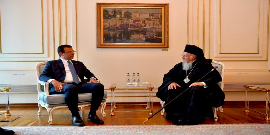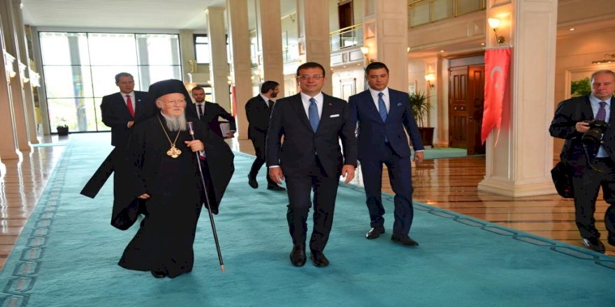 İBB Başkanı Ekrem İmamoğlu, Fener Rum Patriği Batholomeos'yu Saraçhane'deki makam odasında ağırladı.