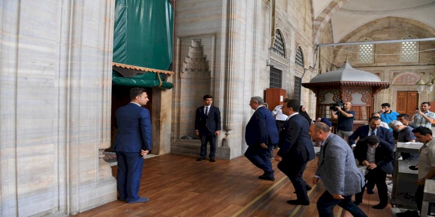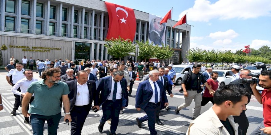 Mansur Yavaş, Ekrem İmamoğlu'nun makam odasında bir süre baş başa görüştükten sonra kameraların karşısına geçti. İmamoğlu, "Tasarruf tedbirlerinde ilk önce nelerden kısacaksınız" sorusuna, "Her şeyin vatandaşın bilgisi dahilinde olmasını istiyoruz. Burada İBB'nin yanı sıra, görünmeyen 28 iştirakimiz aynı felsefe ile yönetilecek. Ve onların da bilançoları, yaptıkları tasarruf veya yaptıkları işlemler, yine vatandaşla paylaşılacak. Tasarruf kalemi İstanbul'da o kadar çok ki. Araç diyebilirim ama araç konusu tek başına basit kalır. Bunun yanı sıra ben ihalelerdeki şeffaflığında büyük bir tasarruf getireceğini şimdiden öngörüyorum" dedi. İmamoğlu ve Yavaş, açıklamanın ardından İBB'nin karşısındaki Şehzade Camii'nde Cuma namazlarını kıldı.