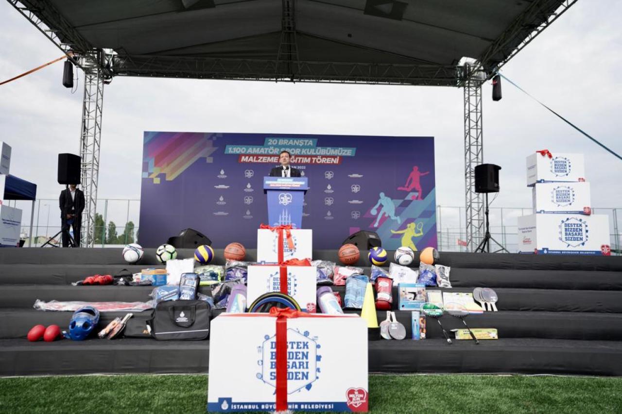 İstanbul Büyükşehir Belediyesi (İBB), 20 farklı branşta faaliyet gösteren toplam 1.100 spor kulübüne malzeme dağıtımına başladı. “Amatör Spor Kulüplerine Malzeme Dağıtım Töreni”, Fatih’teki Yenikapı Spor Tesisleri’nde gerçekleştirildi. Tören; Acıbadem Jimnastik Kulübü sporcularının ritmik jimnastik, İBB Spor Kulübü Taekwondo takımının ‘poomse’ ve dans gösterileriyle başladı. Genç sporcuların birbirinden akrobatik hareketleri, tribünleri dolduran seyircilerden büyük alkış aldı. Genç sporcuları yalnız bırakmayan İBB Başkanı Ekrem İmamoğlu da törende bir konuşma yaptı.