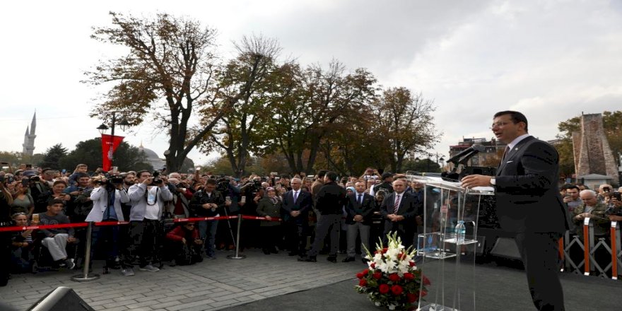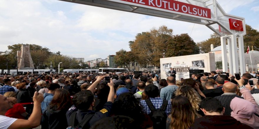 İstanbul Büyükşehir Belediye (İBB) Başkanı Ekrem İmamoğlu, 29 Ekim Cumhuriyet Bayramı kutlamaları kapsamında Sultahahmet Meydanı’nda kurulan, “İstanbul ve Atatürk Fotoğrafları Sergisi”nin açılışını yaptı. Açılış için Taksim Cumhuriyet Anıtı’ndaki resmi törenden Sultanahmet Meydanı’na gelen İmamoğlu, kendisini bir anda vatandaşların arasında buldu. Zorlukla konuşma yapacağı kürsüye ulaşan İmamoğlu, vatandaşları, “Bayramınız kutlu olsun” sözleriyle selamladı. Sultanahmet’in İstanbul ve Türkiye tarihinde ayrı bir önemi olduğunu vurgulayan İmamoğlu, “Burası, bundan 100 yıl önce, Mayıs ayında, bağımsızlığımız için meşhur Sultanahmet Mitingi’nin yapıldığı yer. Yani, Halide Edip başta olmak üzere hem bir Türk kadını hem de o günün bağımsızlığı savunan insanlarıyla, halkımızla bir araya gelip, kurutuluşumuz için kararlı duruşumuzun en simgesel buluşmalarından bir tanesi yapıldı burada. Belki de her birimizi, geçmişinde nine ve dedelerimizin büyük mücadelesiyle, biz, şu anda bu vatanın evlatları olarak, bu güzel cennet vatan da yaşamımızı sürdürüyoruz” dedi. İmamoğlu, sözlerini şöyle sürdürdü: