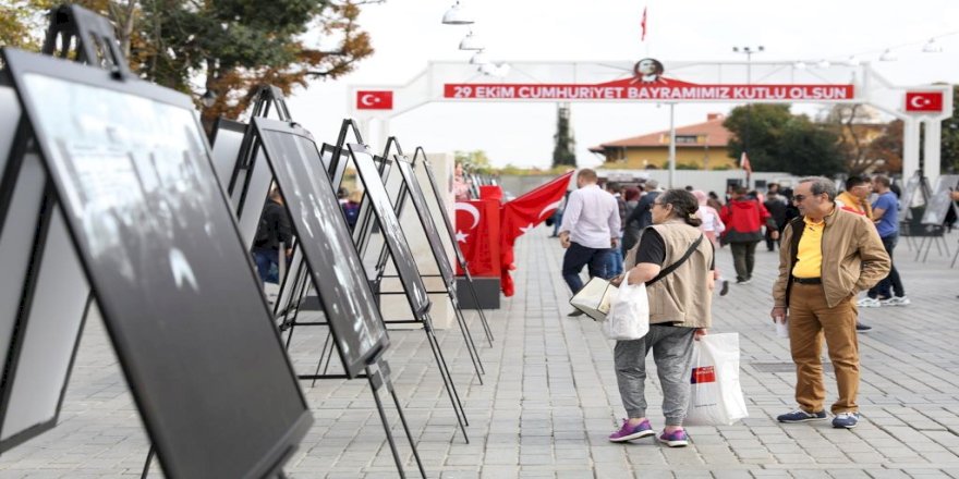 Sergide, işgal kuvvetlerinin İstanbul’u terk edişinden Atatürk’ün ölümüne kadar olan fotoğrafların bulunduğu bilgisini paylaşan İmamoğlu, “Sergimiz, 17 Kasım’a kadar, arkadaşlarımın yağmurlu havalarda da alacağı tedbirlerle devam edecek. Bir millet bu topraklarda ne olduğunu, geçmişini bilmez ise ve bugün nasıl yaşadığının farkında olmaz ise geleceğe de ümitle bakamaz. Bu bilinç, hepimizi birçok tehditten korur. O bakımdan, hayata bilinçli bakabilmemiz adına, bilinçli nesiller, bugünün değerini hisseden, akılla bilimle buluşmuş güzel bir nesil yetiştirebilmemiz için, Cumhuriyet’imizin değerini bilmeliyiz. Demokrasimizin de değerini bilmeliyiz. O bakımdan, Mustafa Kemal Atatürk’ün emaneti hem Cumhuriyet’imizi hem de demokrasimizi daha da geliştirerek ileriki yıllara taşıyacağız. Hep birlikte yapacağız bunu. O manada bu sene özellikle bütün afişlere, ‘Yaşasın Cumhuriyet, Yaşasın Demokrasi’ yazdık. Cumhuriyet ve demokrasinin yan yana durduğunda ne kadar güzel olduğunu hepimiz biliyoruz. Bu bakımdan, Cumhuriyet’imize ve demokrasimize zarar veren her şeyin karşısında, milli duygularımızla, hep birlikte, bir arada, 82 milyon vatansever insan olarak, 16 milyon vatansever insan olarak, kol kola, omuz omuza duruşun simgesidir bugün” diye konuştu.