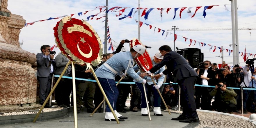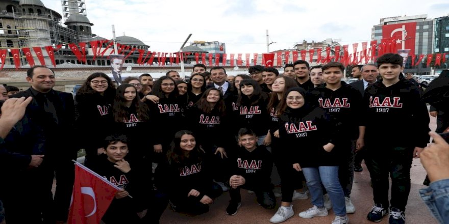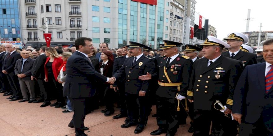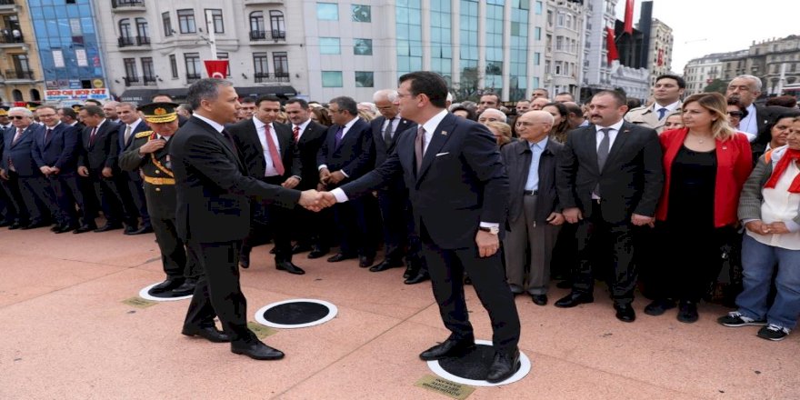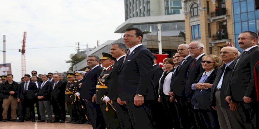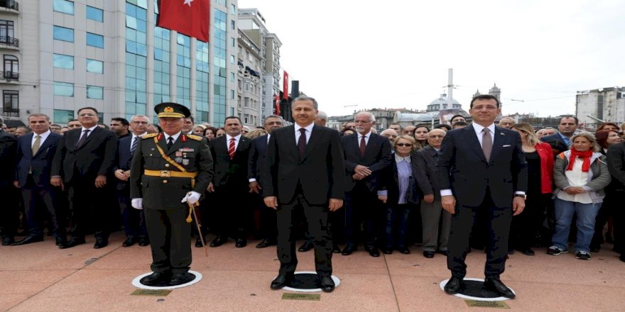 İstanbul Valisi Ali Yerlikaya, 1’nci Ordu Komutanı Musa Avsever ve İBB Başkanı Ekrem İmamoğlu, Taksim Cumhuriyet Anıtı’ndaki resmi törende bir araya geldi. Tören; Atatürk, silah arkadaşları ve tüm şehitler için saygı duruşunda bulunulması, ardından İstiklal Marşı’nın okunmasıyla başladı. Daha sonra sırasıyla Yerlikaya, Avsever ve İmamoğlu, tören mangası eşliğinde Atatürk Anıtı’na çelenk koyarak, saydı duruşunda bulundu. Çelenklerin konulmasının ardından resmi tören sona erdi. CHP İstanbul İl Başkanı Canan Kaftancıoğlu ve İYİ Parti İstanbul İl Başkanı Buğra Kavuncu da resmi törenin ardından, parti yöneticileriyle birlikte Atatürk Anıtı’na çelenk koydu. İmamoğlu, törenin ardından alanda bulunan vatandaşların ilgi odağı oldu. İmamoğlu, tören alanındaki İstanbul Atatürk Anadolu Lisesi öğrencileriyle toplu fotoğraf çektirdi.