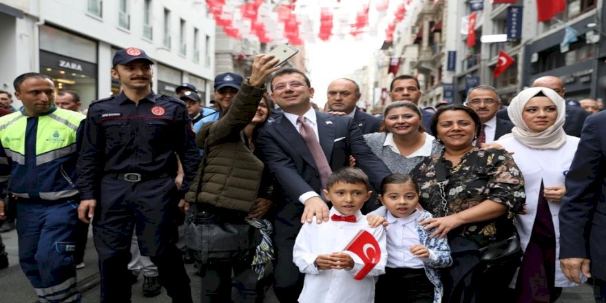 İstanbul Büyükşehir Belediye (İBB) Başkanı Ekrem İmamoğlu, 29 Ekim Cumhuriyet Bayramı etkinlikleri kapsamında Taksim Cumhuriyet Anıtı’ndaki çelenk koyma törenine katıldı. İmamoğlu, İBB iştiraki BİMTAŞ’daki incelemelerinin ardından Odakule’den tören alanına yürüyerek gitti. İmamoğlu’na yürüyüşünde İBB üst yönetimi ile zabıta, itfaiye, güvenlik elemanları ve sağlık ekiplerinden oluşan çok sayıda personel eşlik etti. İmamoğlu, kendisiyle fotoğraf çektirmek isteyen vatandaşlara, “Hem fotoğraf çekilelim hem yürüyelim. Tören alanına yetişmemiz lazım” dedi. Bu şekilde ilerleyen İmamoğlu’nun arkasındaki kalabalık, yol boyu arttı.