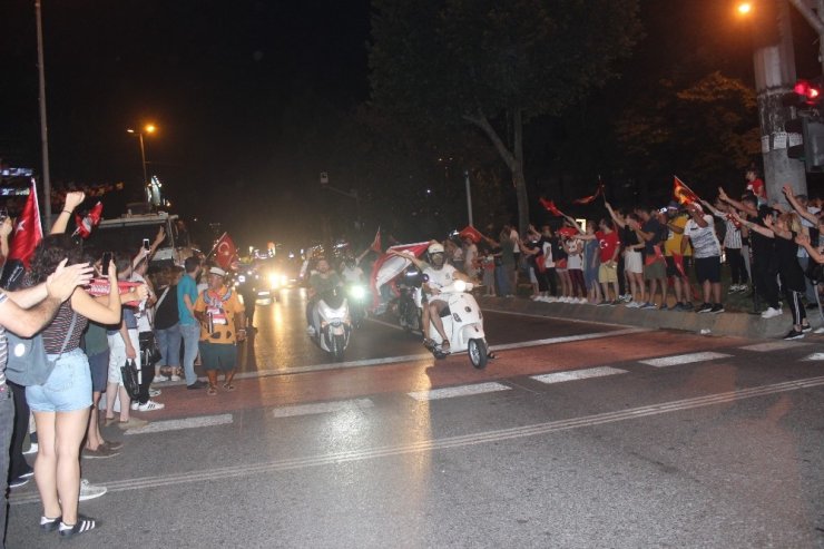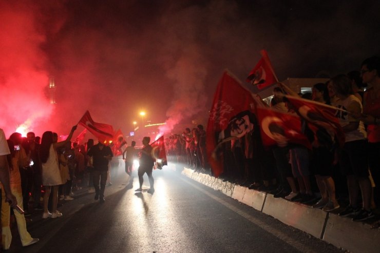 Kentin çeşitli yerlerinde sokağa dökülen vatandaşlar araçlarıyla konvoy oluşturarak, kutlama yaptı. Beşiktaş Barbaros Bulvarında konvoy oluşturan vatandaşlar korna çalarak, ellerindeki Türk Bayraklarıyla araçların camlarından dışarı çıkarak, sevinç gösterisinde bulundu.