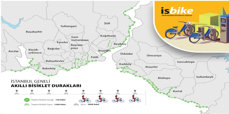 İSBİKE, yapılan çalışmalar sonucunda 150 durak, bin 500 bisiklet ile hizmet verebilen kapasiteye ulaştı. Zeytinburnu’nun E-5 altında kalan bölümünün tamamında ve Karaköy – Beşiktaş – Sarıyer boğaz hattında akıllı bisiklet durakları hizmete alındı. Durak güzergâhları ve bisiklet kapasiteleri şöyle:
