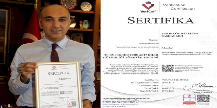 2014 yılından beri Bilgi güvenliği yönetim sisteminin en kapsamlı hali ile kurarak ISO-27001 Bilgi Güvenliği Yönetim Sistemi Standardını alan ilk belediye olan Bakırköy Belediyesi, uluslararası bağımsız denetim firmasının denetiminin ardından TÜRKAK(Türk Akreditasyon Kurumu) akreditasyonlu ISO-27001-2017 bilgi güvenliği sertifikasını yeniden aldı.