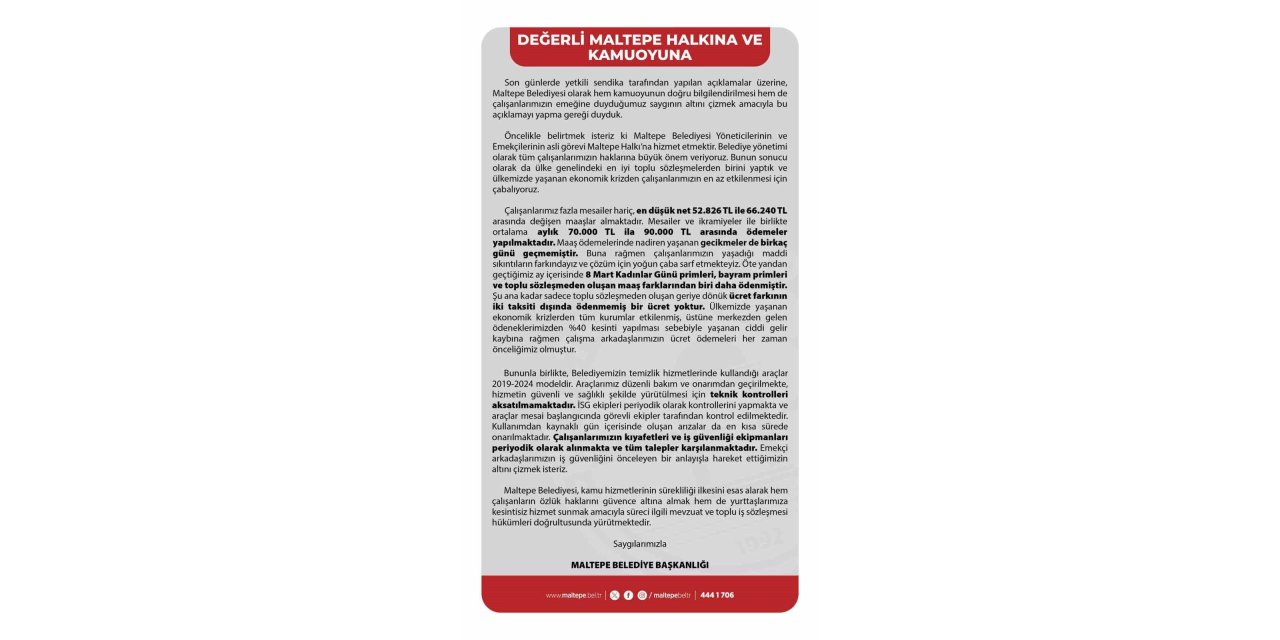 MALTEPE BELEDİYESİ: "EKONOMİK KRİZDEN İŞÇİLERİMİZİN EN AZ ETKİLENMESİ İÇİN ÇABALIYORUZ"