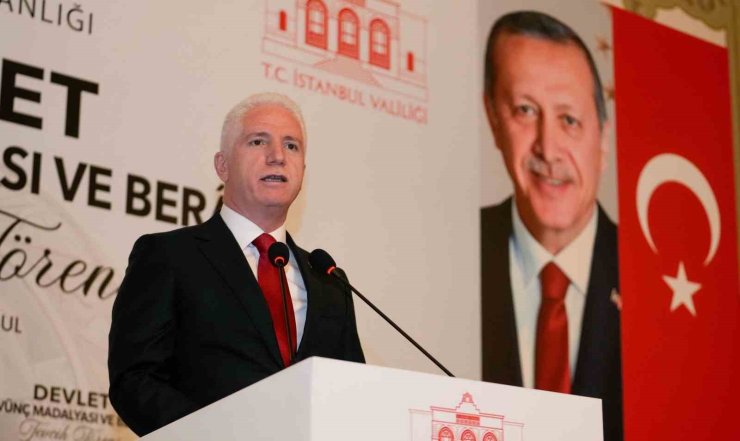 Programda konuşan İstanbul Valisi Davut Gül," Türkiye'nin her yerinde Cumhurbaşkanımız tarafından verilen Devlet Övünç Madalyası ve Beratı şehit yakınlarımıza ve gazilerimize bugün aynı anda tevcih ediliyor. Bu vesileyle törenimizi teşrif eden her birinize ayrı ayrı teşekkür ediyorum. Bin yıldır bu topraklardayız. Bu toprakların her bir karışı için şehitler verdik, gazi olduk. Şehitlerimizin, gazilerimizin bu vatan için ödediği bedelleri millet olarak, devlet olarak çok iyi biliyoruz. Bugün, bayrağımız özgürce dalgalanıyorsa, onurumuzla, şerefimizle hayatımızı sürdürüyorsak bu aziz şehitlerimiz ve gazilerimiz sayesindedir. Bu sebeple bu ülkenin her bir ferdinin şehitlerimize, şehit yakınlarına, gazilerimize minnet borcu vardır. Şehitlerin ölmediğine, ölmeyeceğine inanan bir inancın mensupları olarak ne yaparsak yapalım onların ve sizlerin hakkını ödeyemeyeceğimizi biliyoruz. Şehitlerimizi ve kahraman gazilerimizi devlet olarak, millet olarak bağrımıza basıyoruz" dedi.