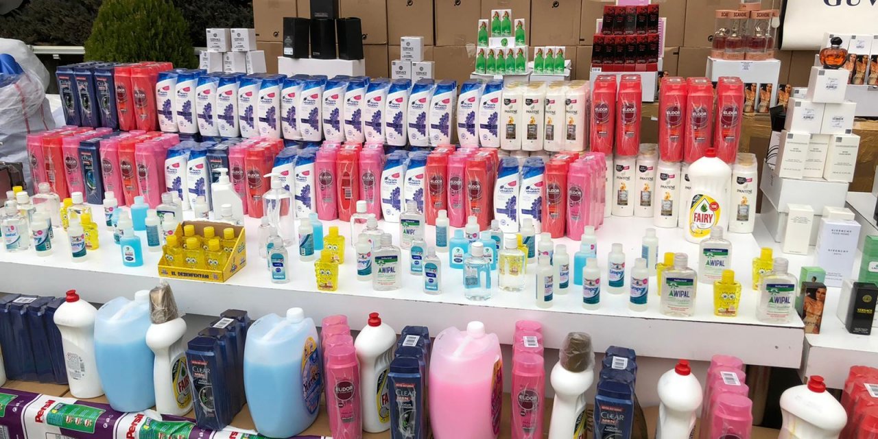 Adreslerde yapılan aramalarda, ilk imalathanede 1 milyon 109 bin 950 boş şampuan şişesi, kapak, boş toz deterjan ambalajı, karton kutu, 140 bin 945 şampuan, dezenfektan, çamaşır suyu, halı yıkama şampuanı, 3 bin litre etil alkol, bir adet şampuan dolum makinesi, bir kompresör makinesi ele geçirdi. Diğer adreste ise 17 bin 508 adet dolu parfüm şişesi ele geçirildi.