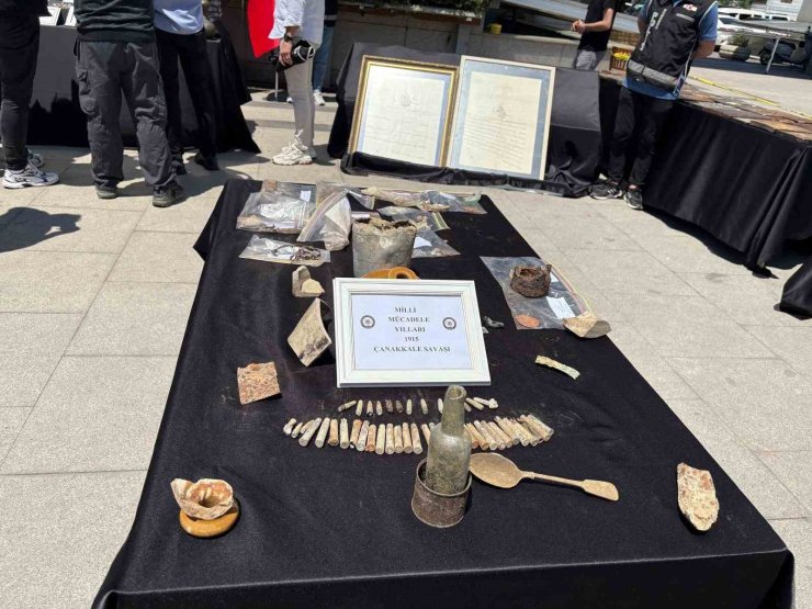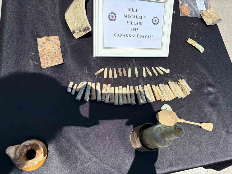 Ayrıca, Milli Mücadele Dönemi'ne ait olduğu ve Gelibolu Yarımadası'ndaki kazılardan çıkarıldığı değerlendirilen 108 eser ve obje de ele geçirilenler arasında yer aldı.